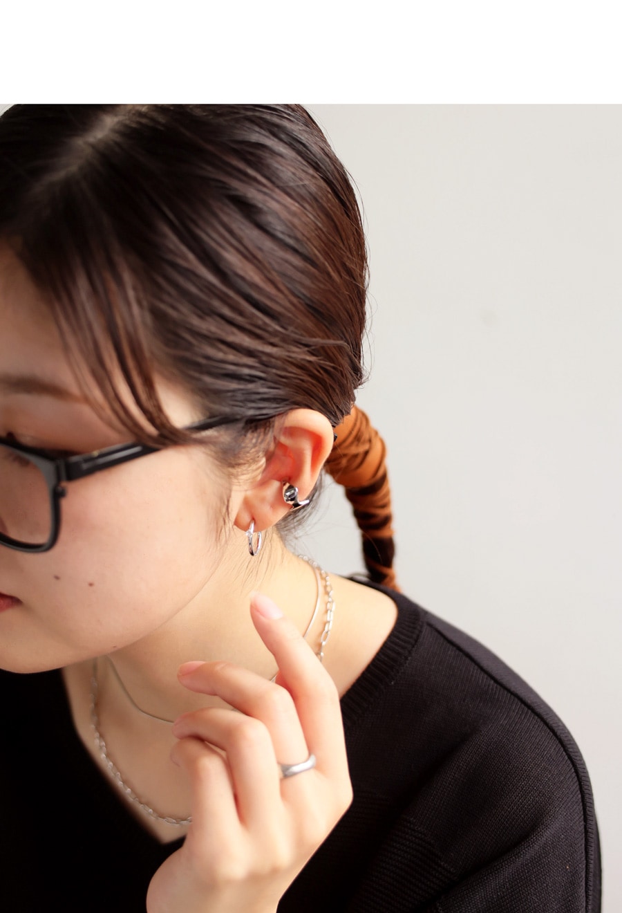 片耳にさっと着けるだけで、顔まわりにニュアンスを与え、洗練された大人のムードを演出。