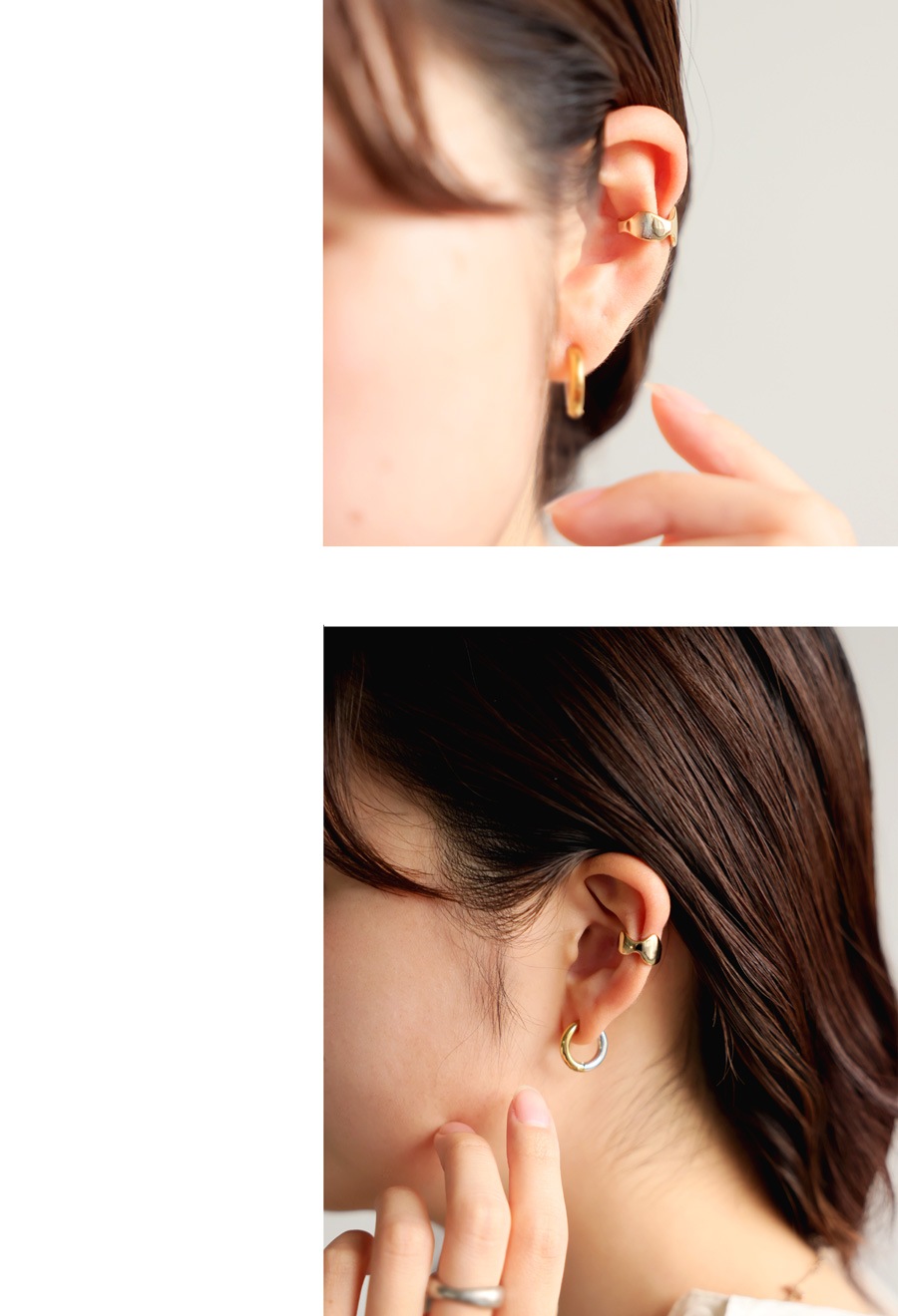 シンプルながらも曲線の美しさが際立ち、単体使いはもちろん、他のピアスやイヤーカフとのレイヤードにも好相性。