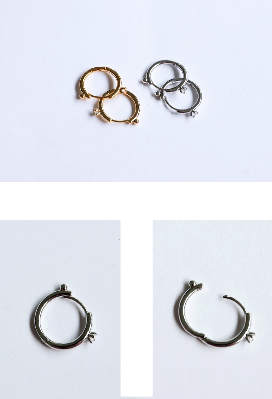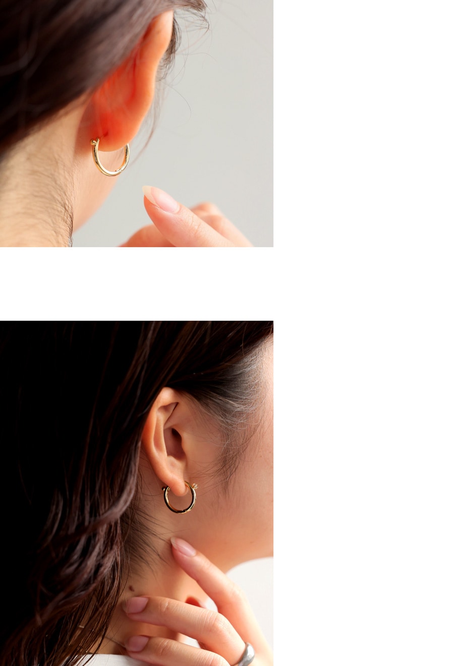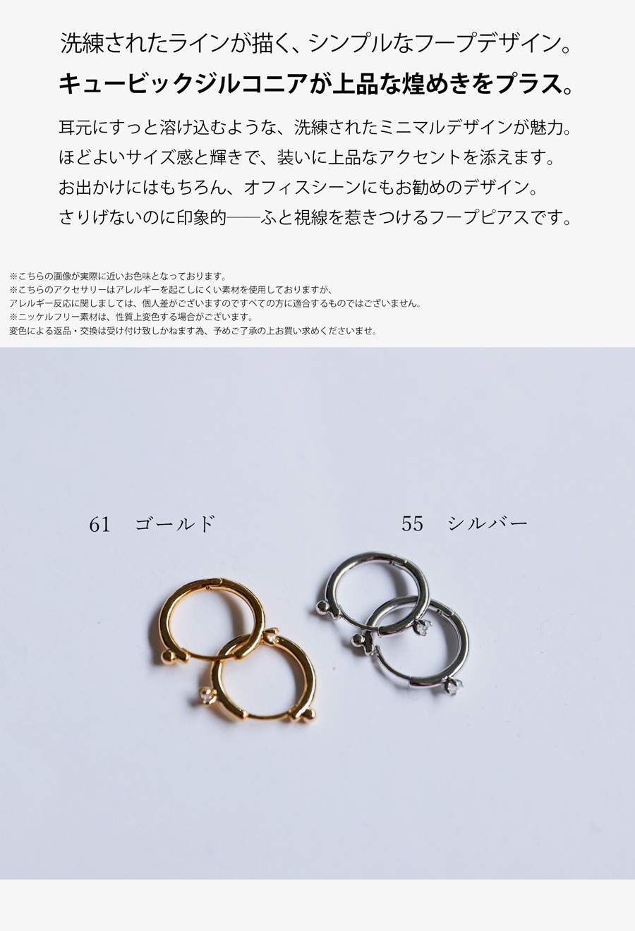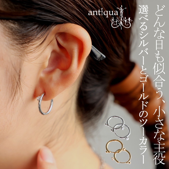 ピアスホールにしっかりフィットするフープ型で、着脱も簡単。