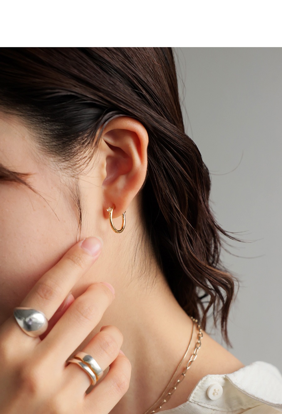 髪をまとめたアップスタイルや、耳元が見えるショートヘアにもよく映え、視線を惹きつけるアクセントに。