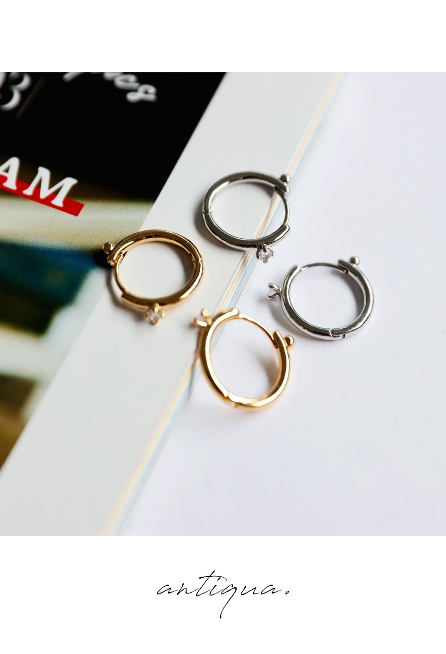 ミニマルなデザインだからこそ引き立つ、小さなキュービックジルコニアがワンポイント。