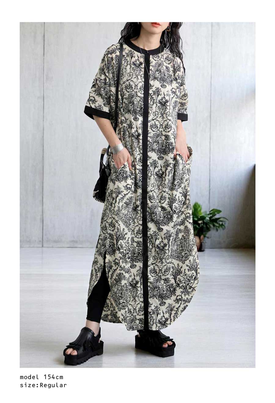 前ボタン仕様で、ワンピースとしても羽織りとしても着まわせる2WAY仕様。