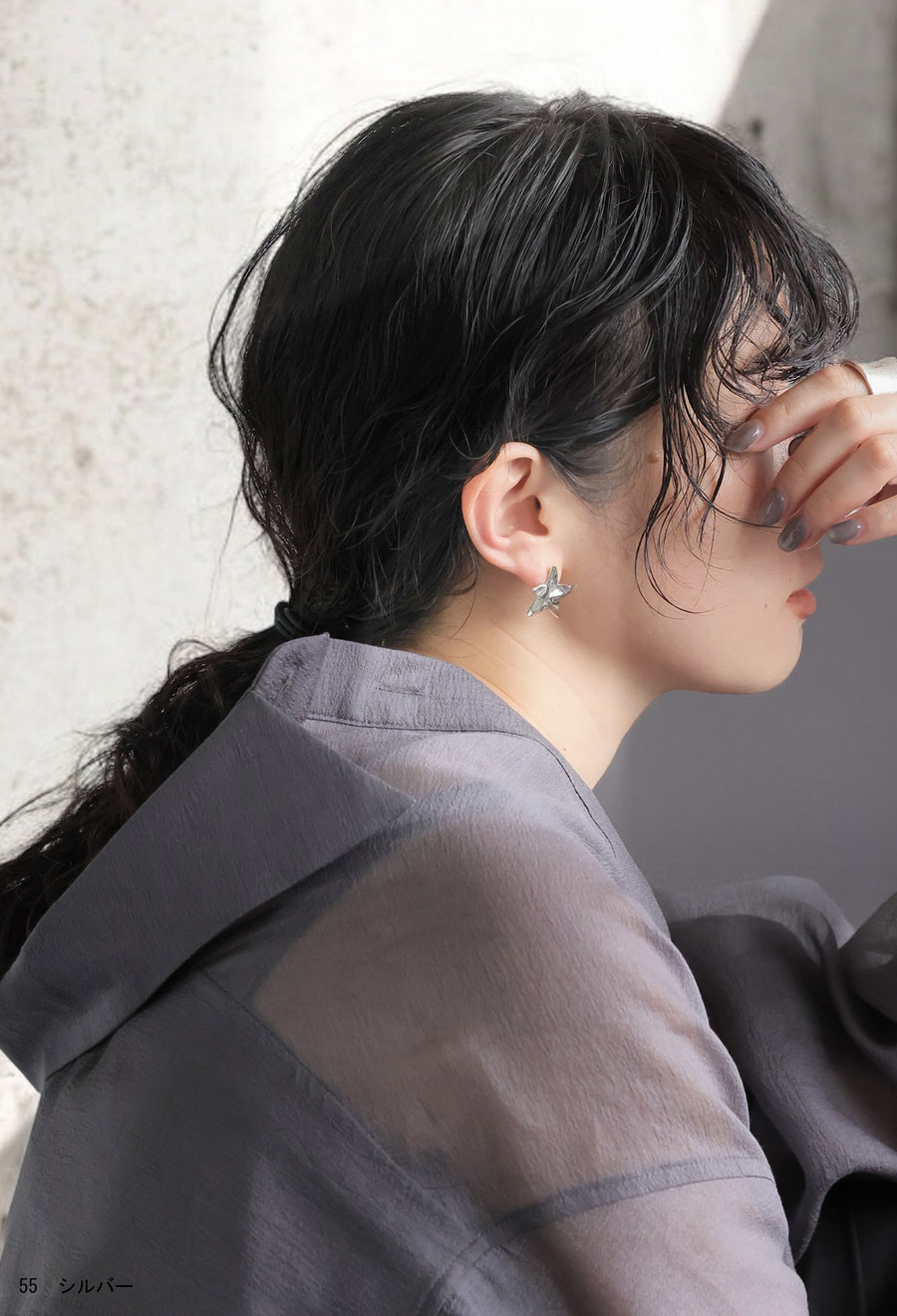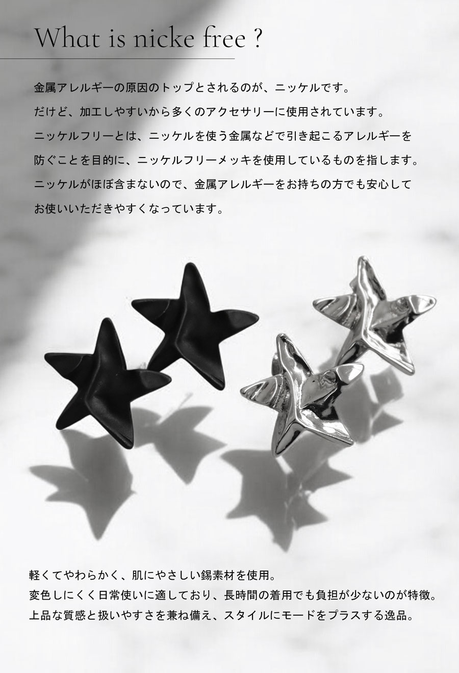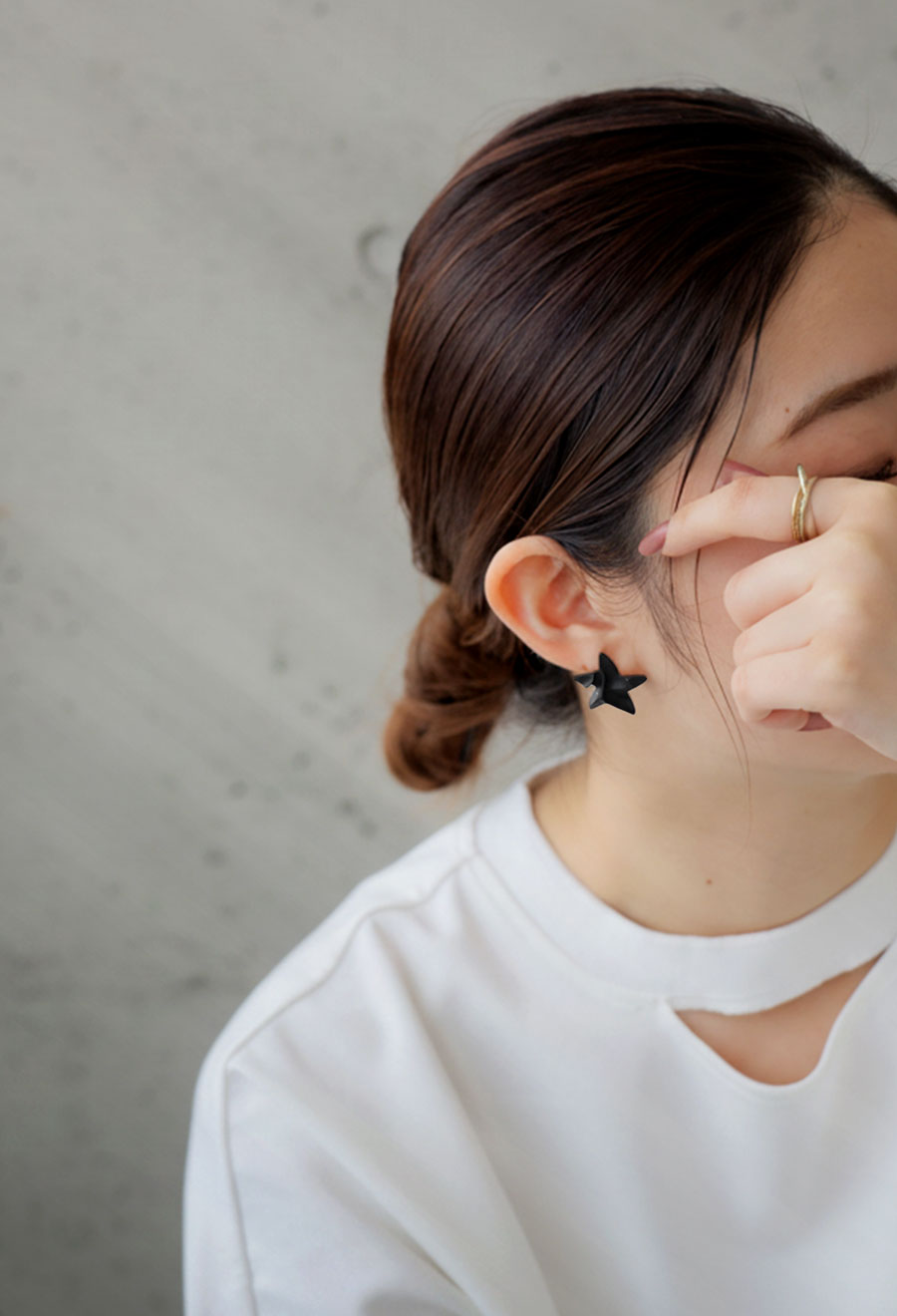 シンプルながらも印象に残る星モチーフが、カジュアルからきれいめまで幅広いスタイリングにマッチします。