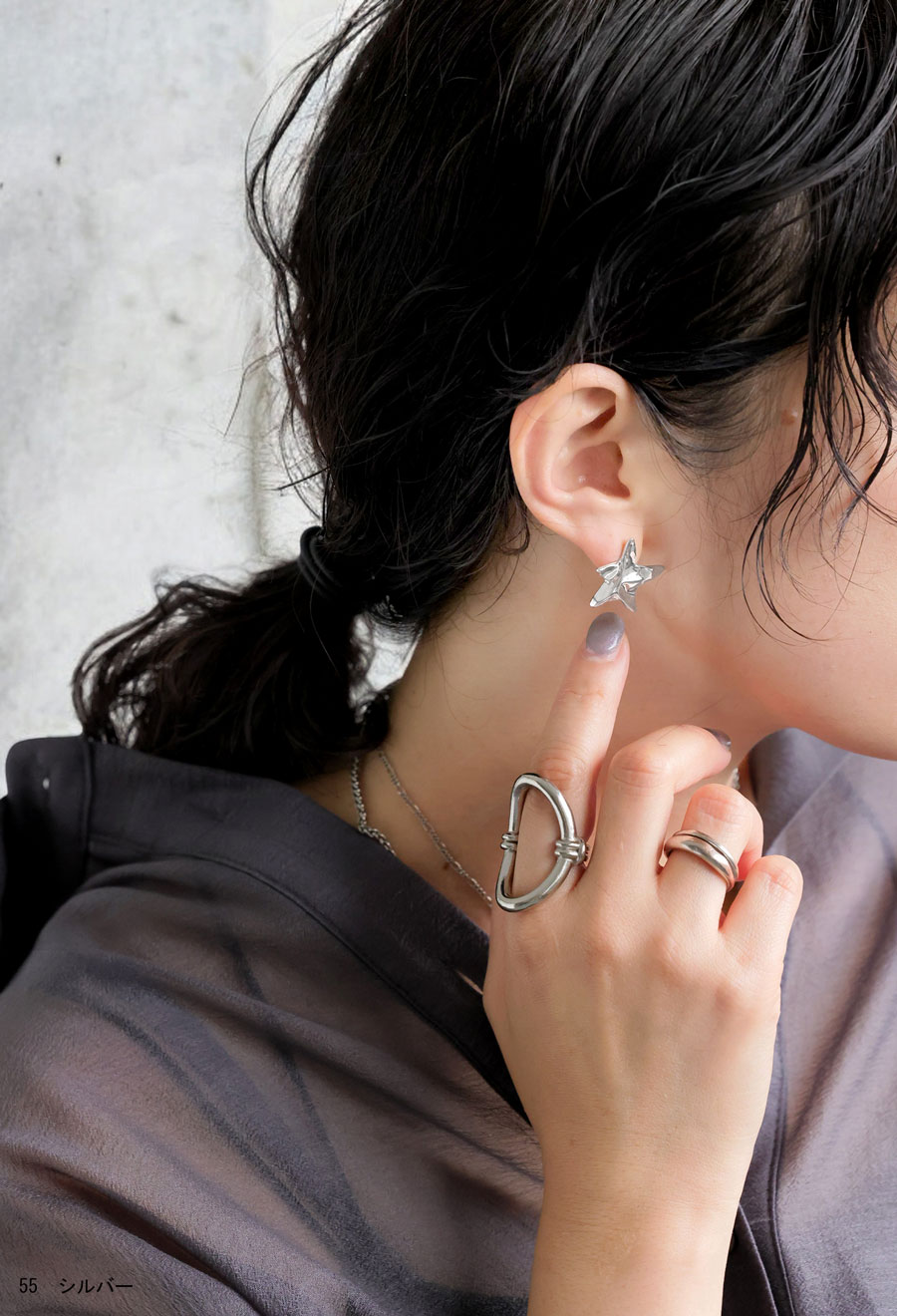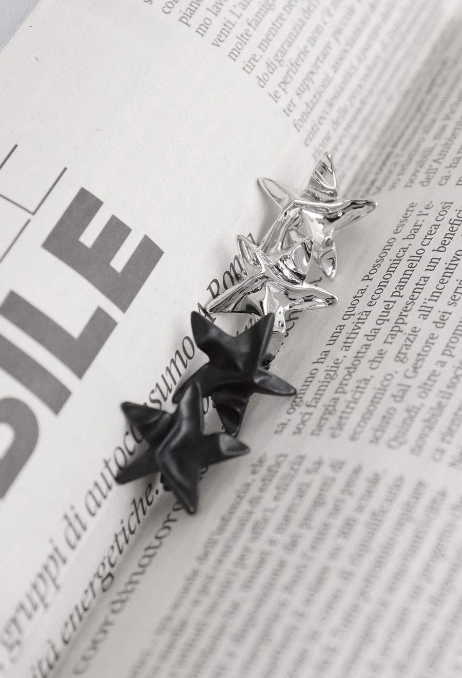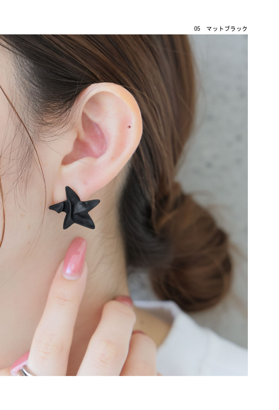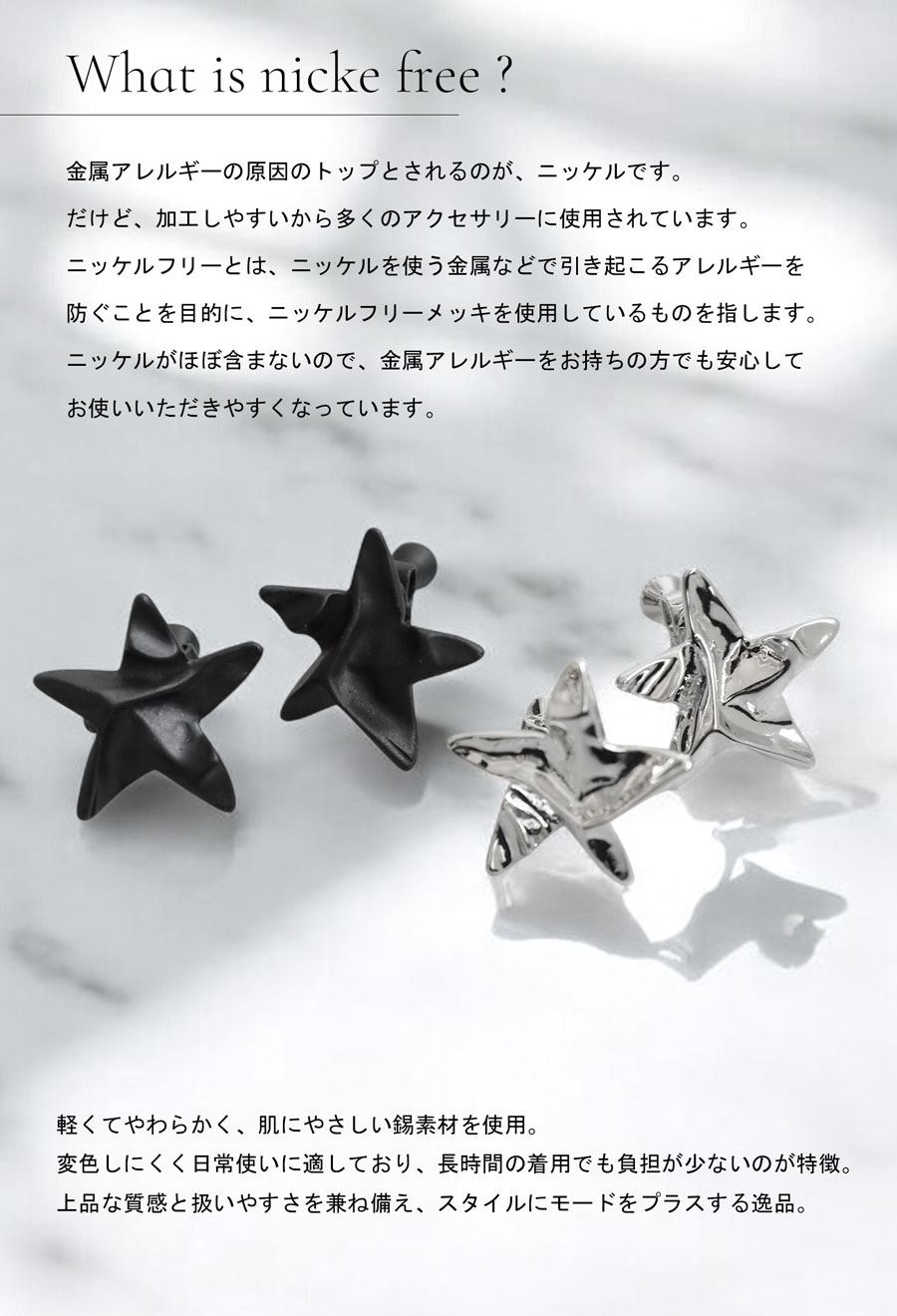 シンプルながらも印象に残る星モチーフが、カジュアルからきれいめまで幅広いスタイリングにマッチします。