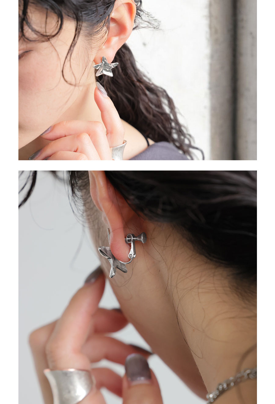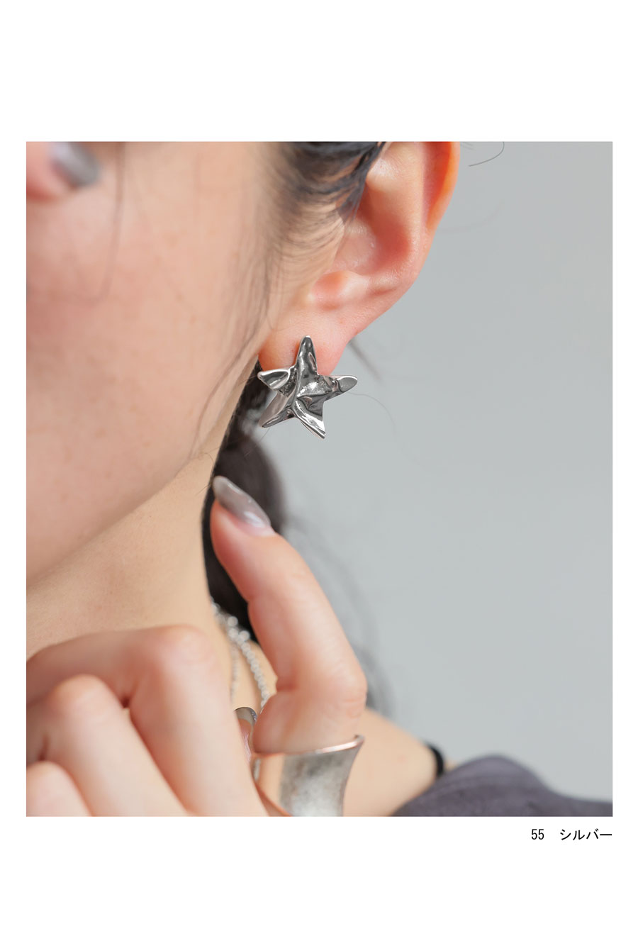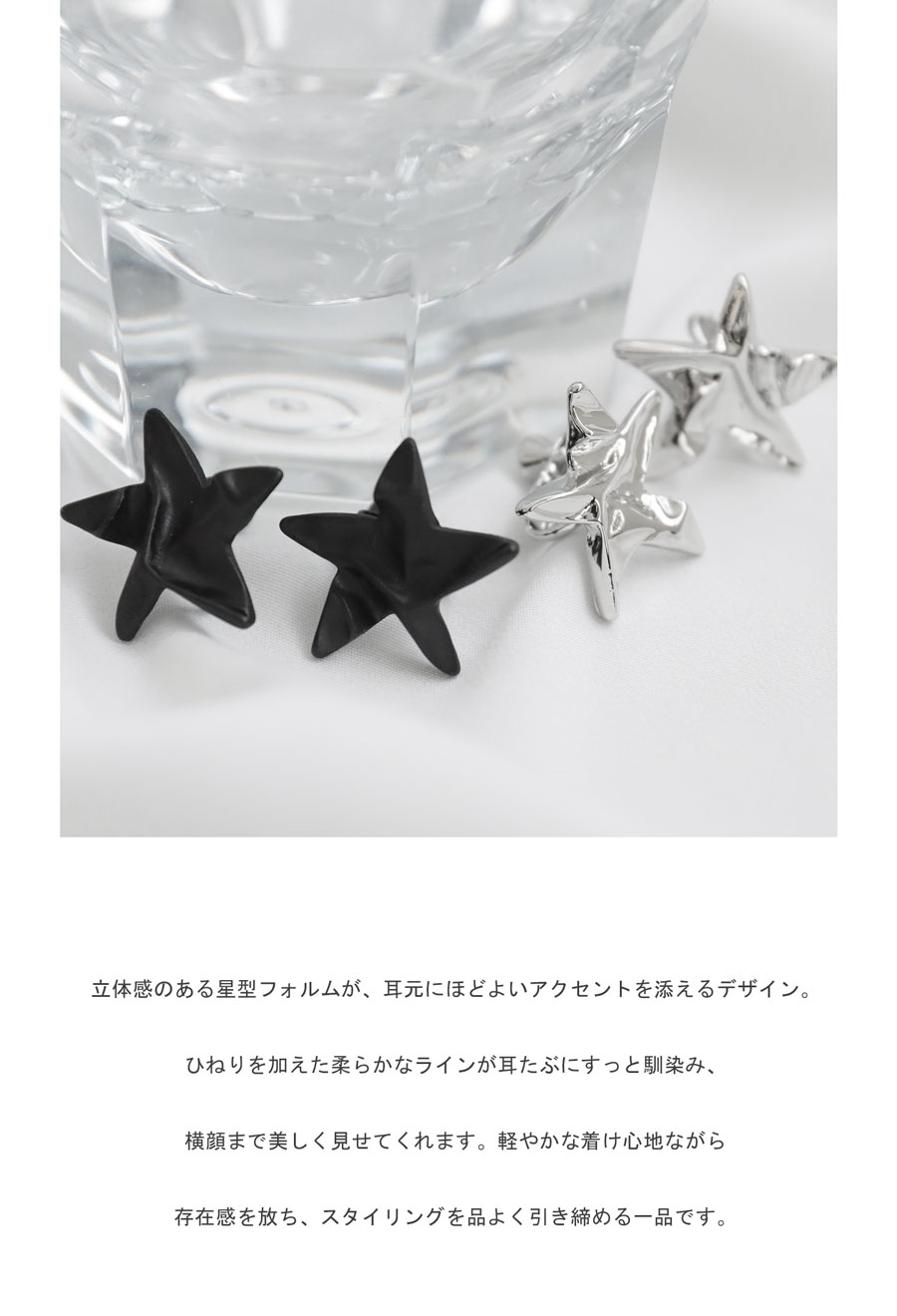 立体感あるフォルムが耳元に個性を添える、ツイストスター(星)のイヤリングです。