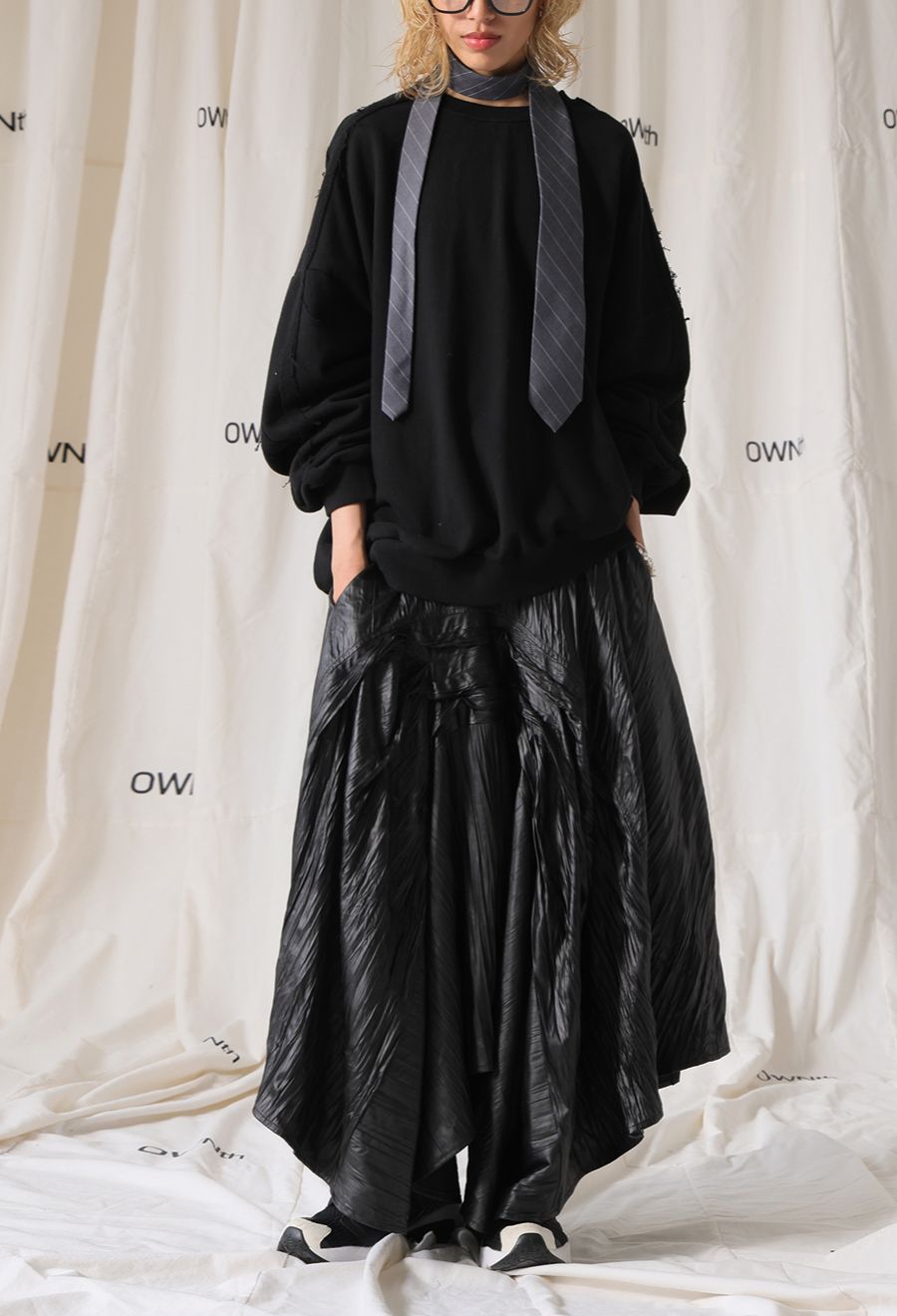 ブラック(黒・ブラック・Black)のワントーンは、タックや陰影を美しく際立たせ、より立体的な印象に。