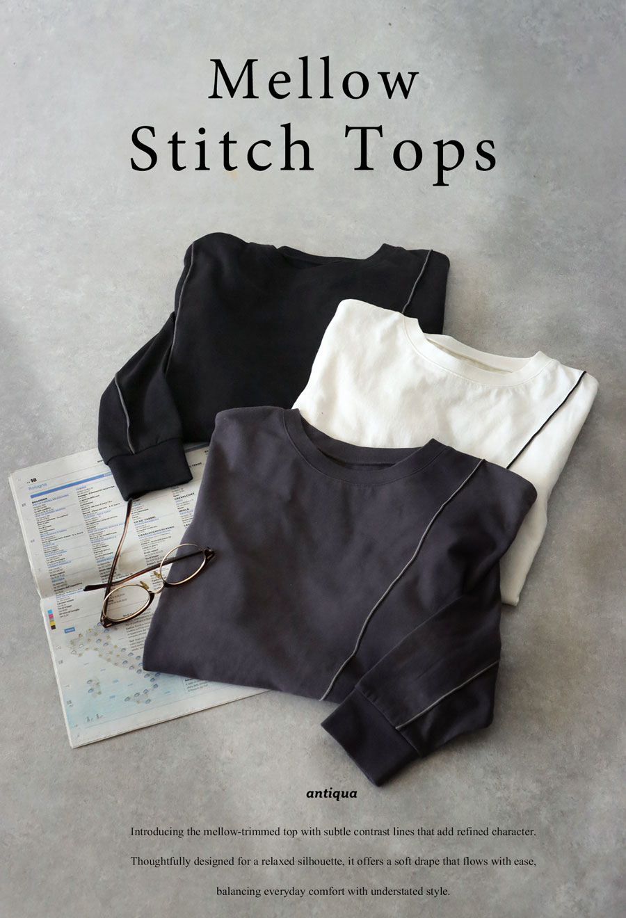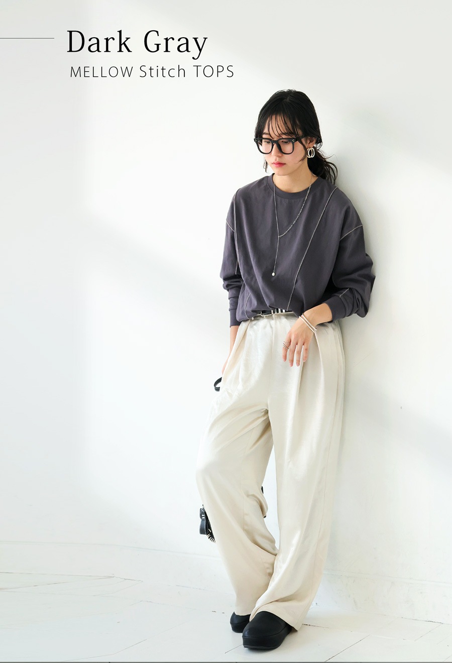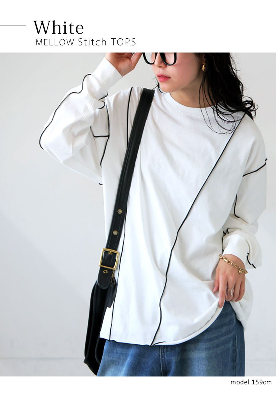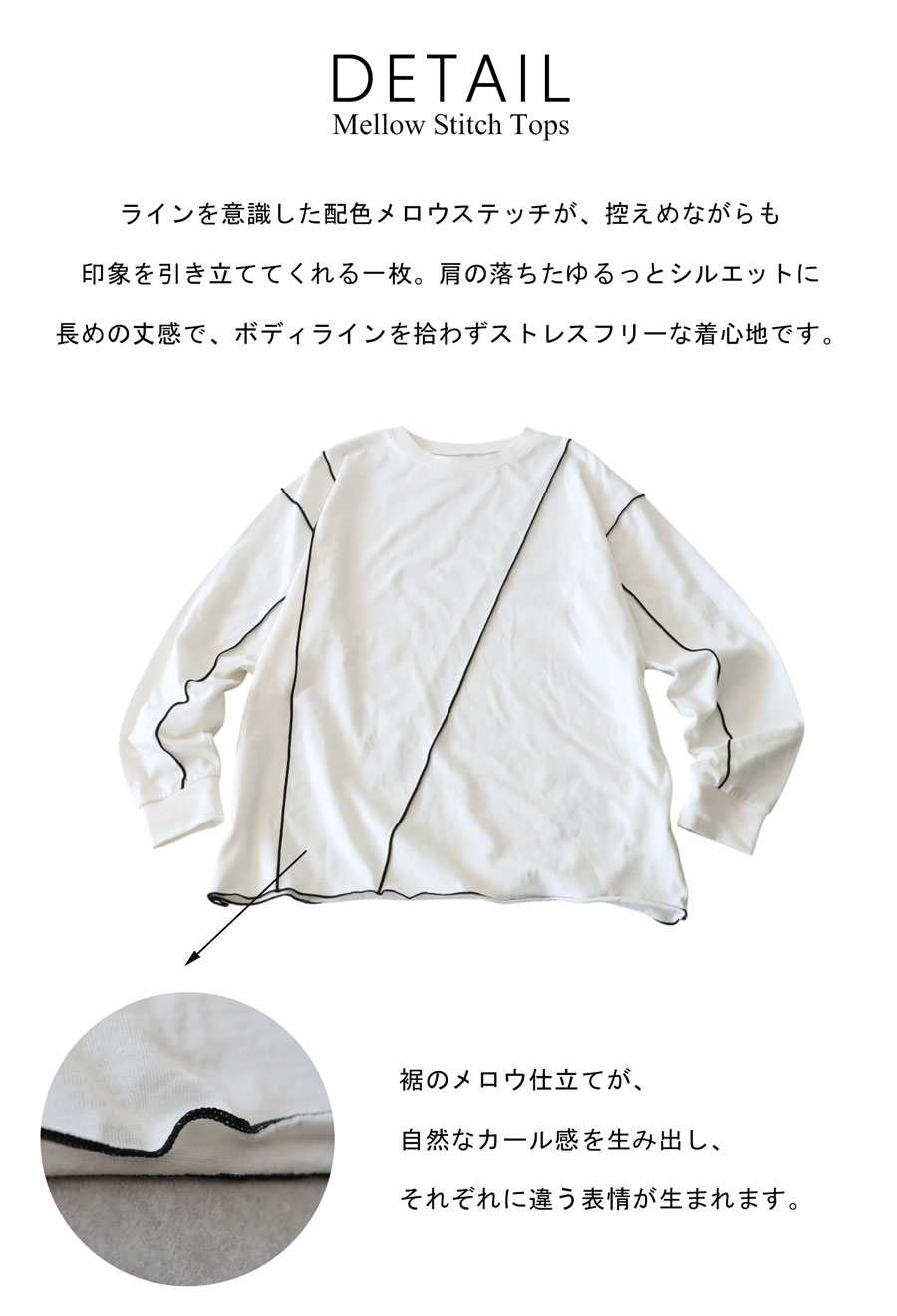 ほどよくゆったりとしたシルエットで、シンプルながらも配色メロウステッチが映える一枚です。