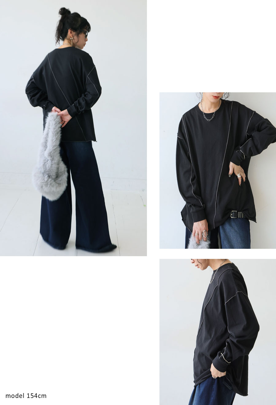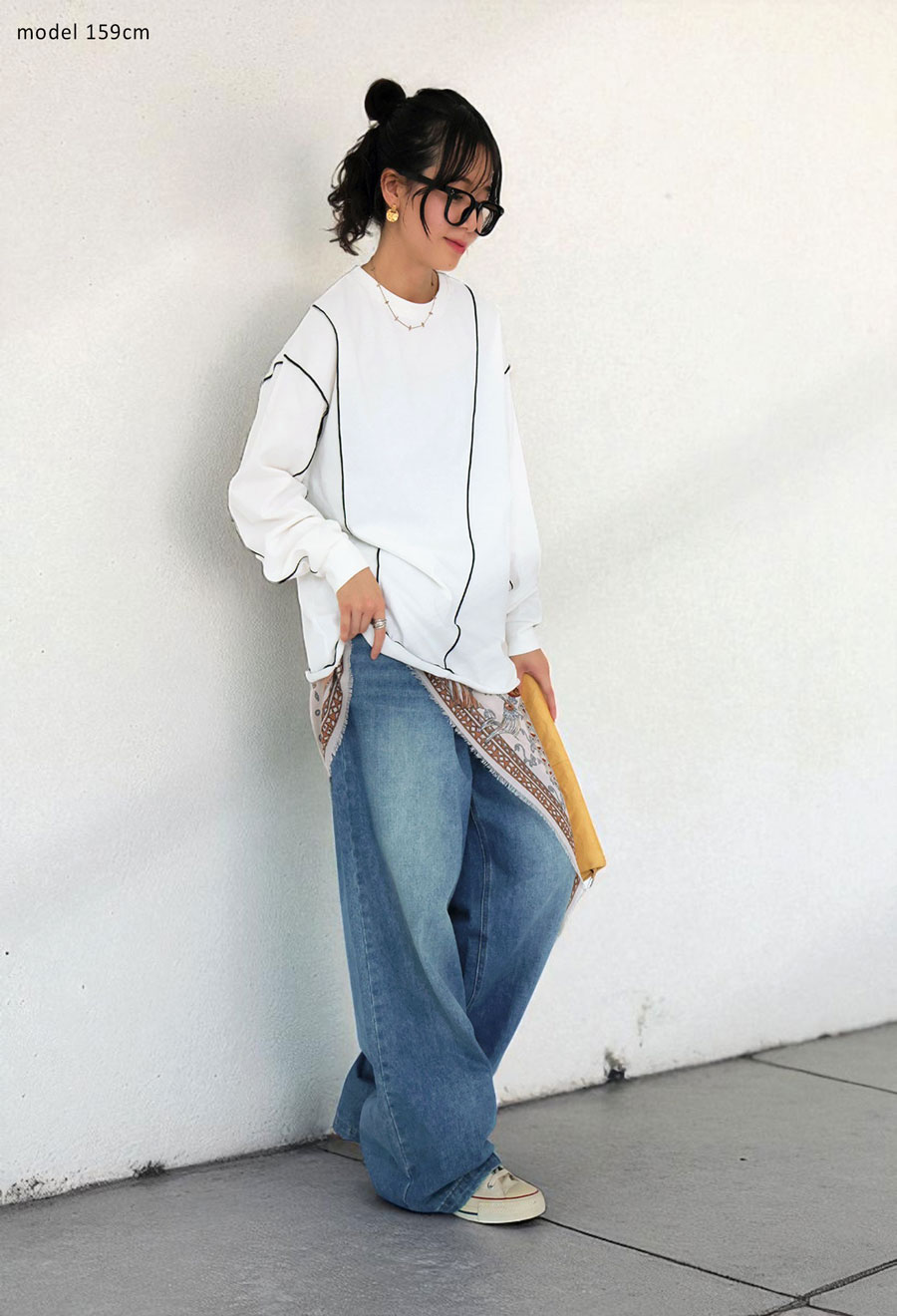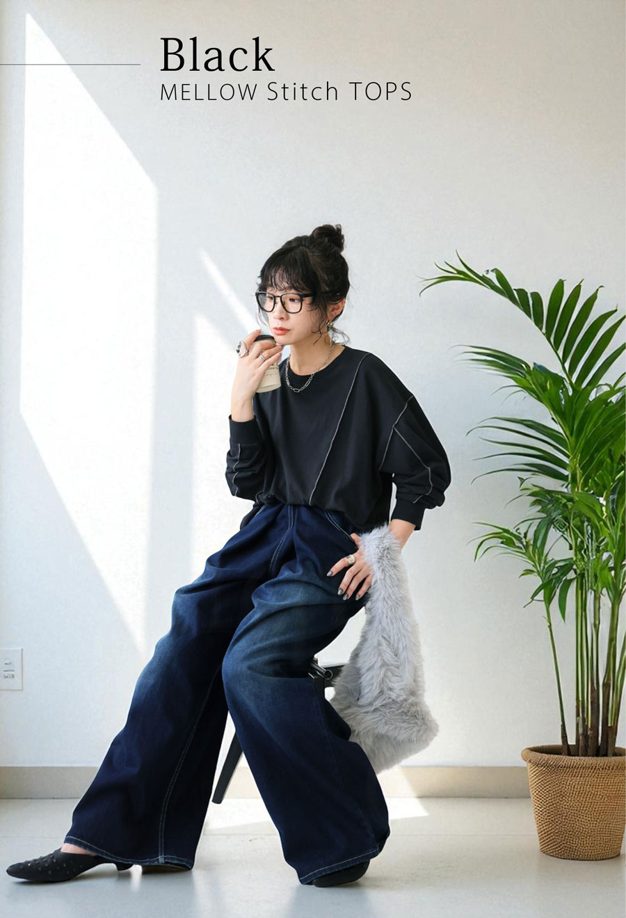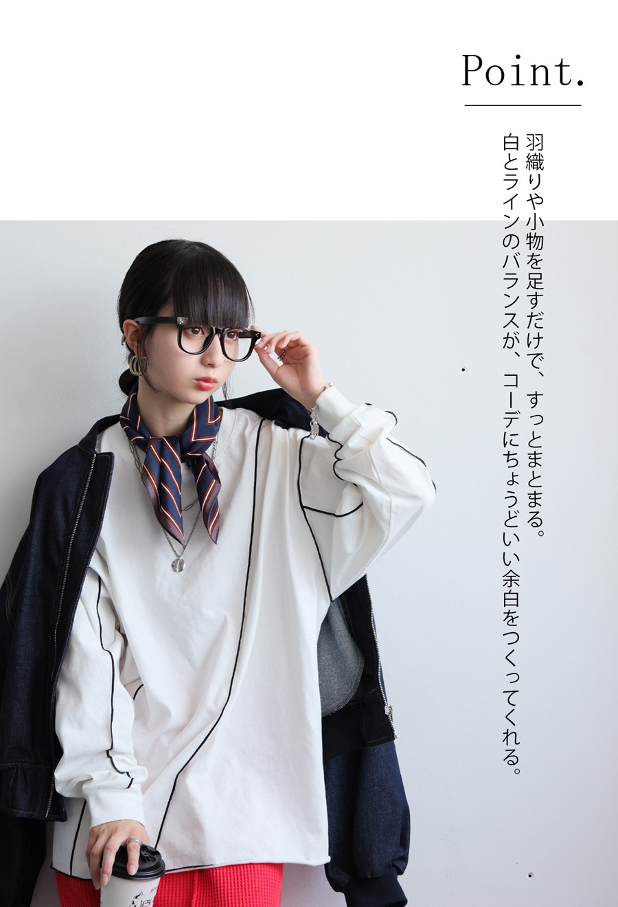 ほどよくゆったりとしたシルエットで、シンプルながらも配色メロウステッチが映える一枚です。