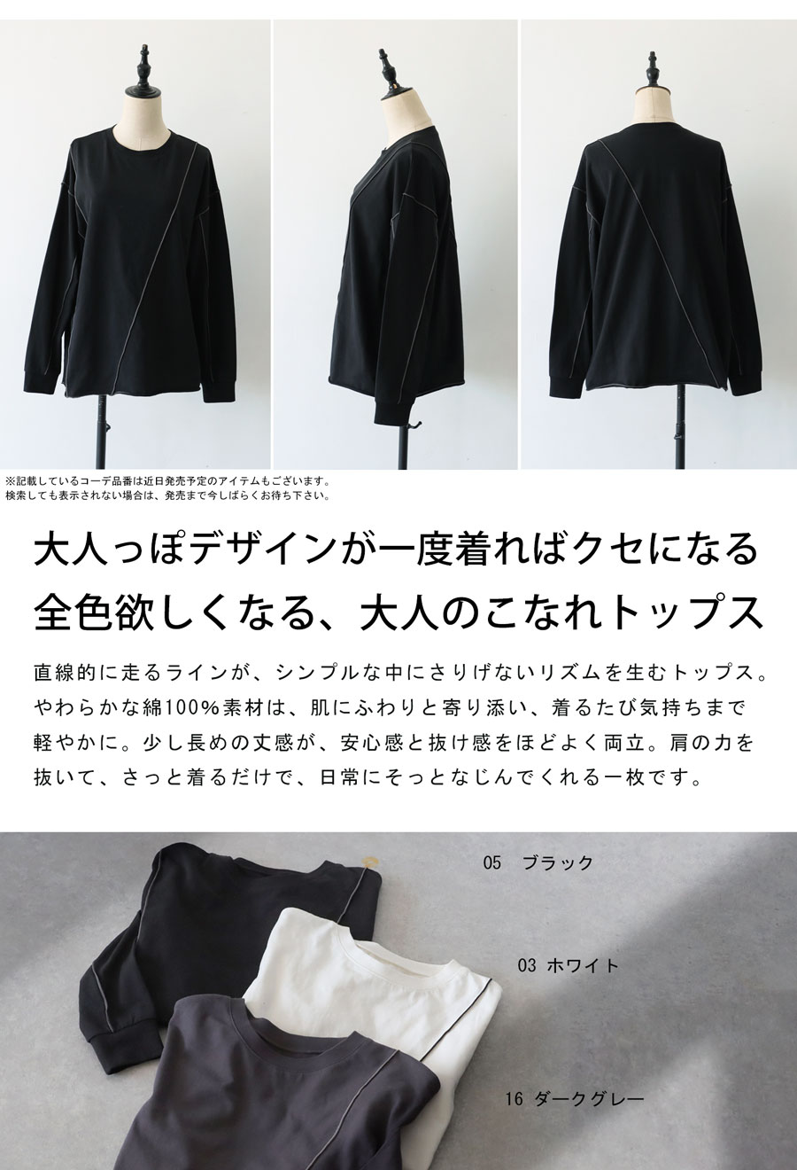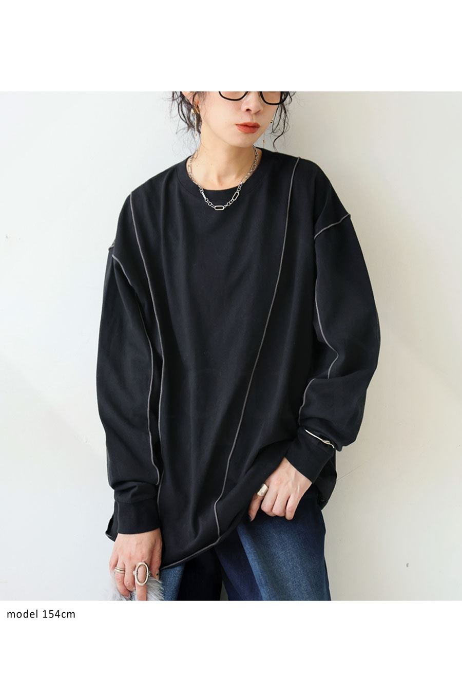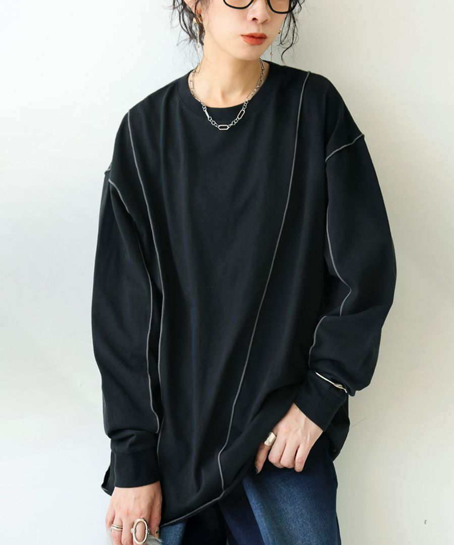 「絶対使える、春の即戦力」1,000円OFF対象! 配色 メロウステッチロンT レディース トップス 長袖 ロンT・(100)メール便可