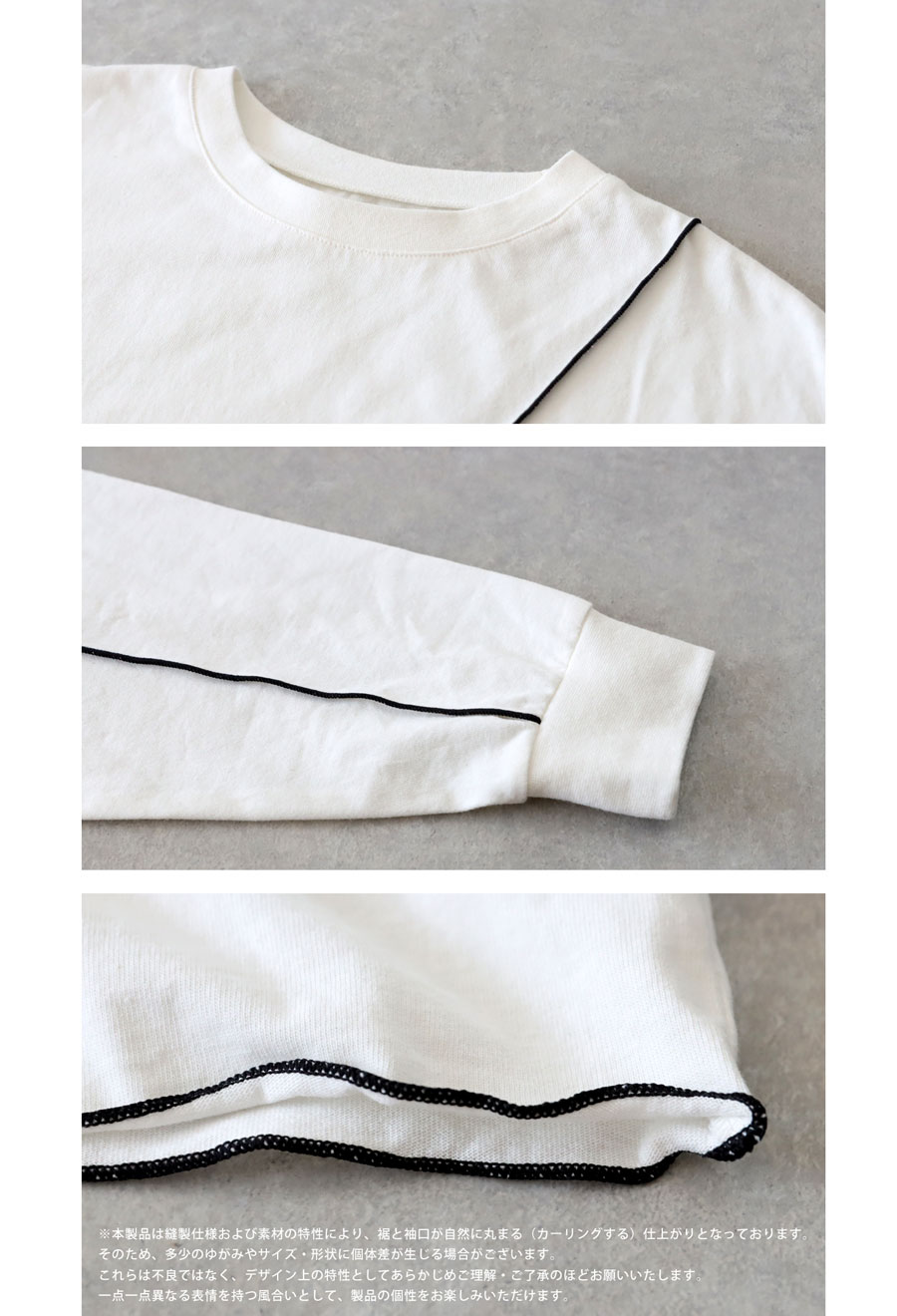 こちらの製品は縫製の仕様により、素材の特性上、裾と袖口が丸まります(カーリング)。