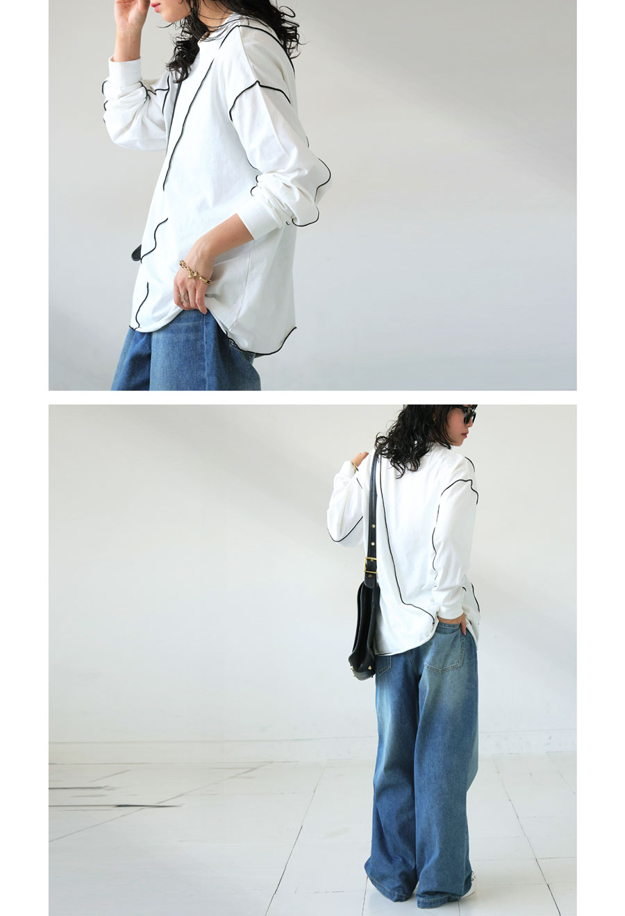 どんなボトムとも相性がよく、カジュアルコーデのアクセントにぴったりなロンTです。