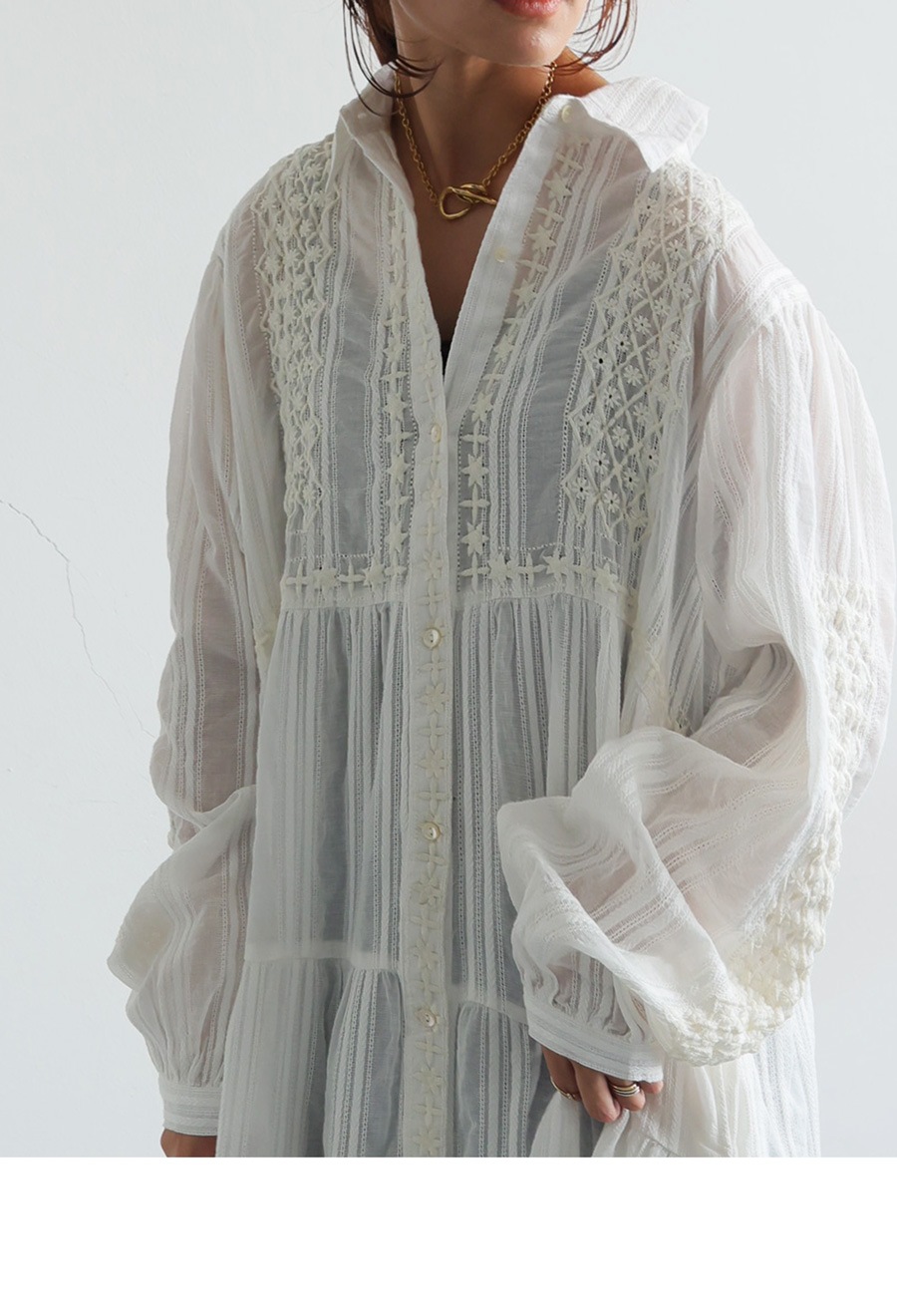やわらかな風とともに纏いたい、手仕事のような刺繍が印象的なロングワンピースが登場しました。