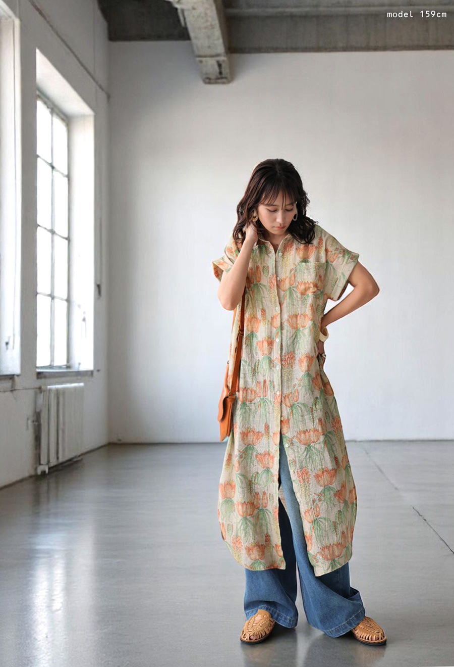 花柄シャツワンピース 綿100 インド綿 レディース 羽織り 送料無料・再入荷 メール便不可