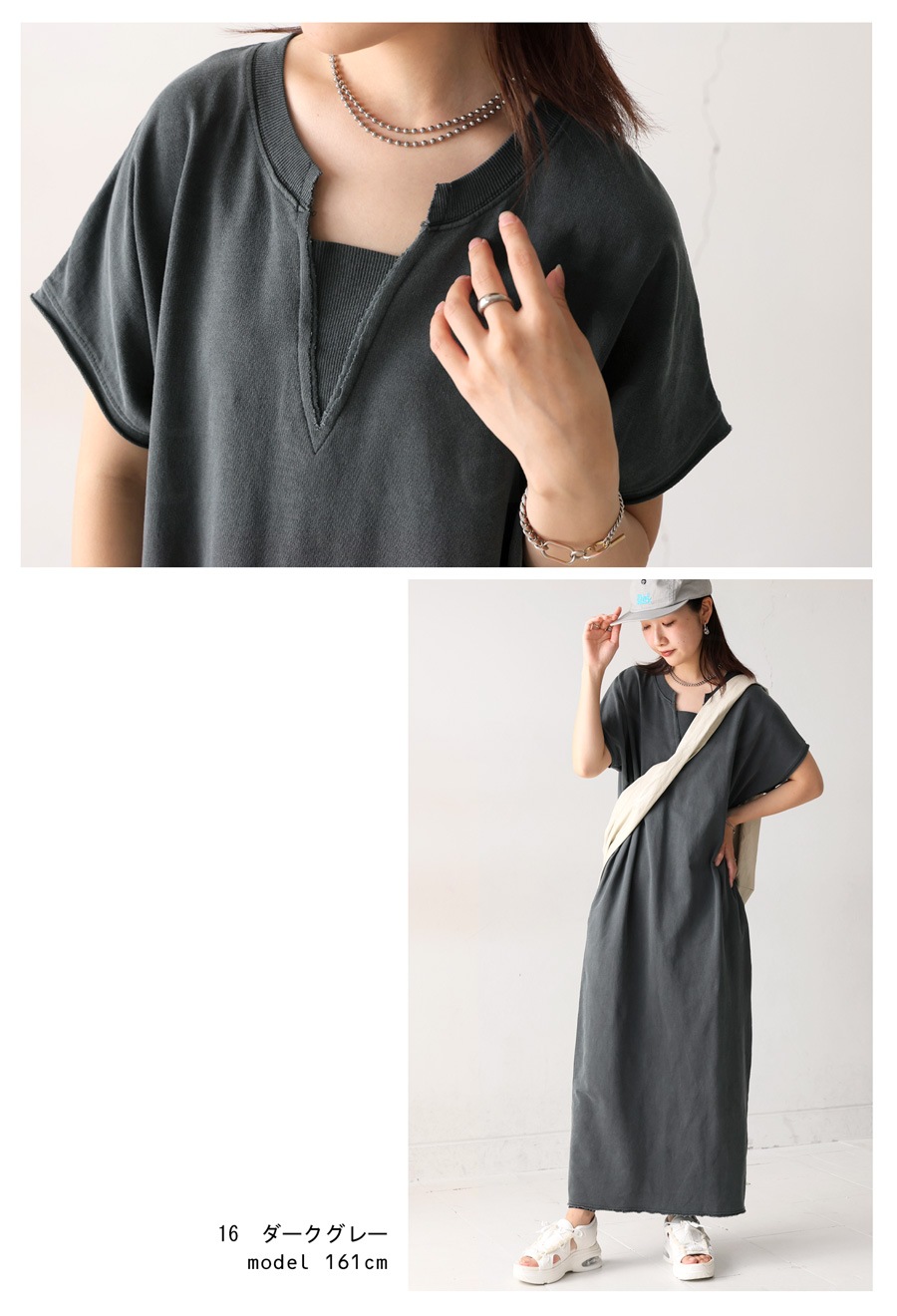 ピグメント加工 ワンピース レディース ロング 半袖 送料無料・メール便不可