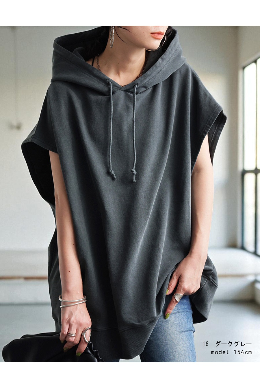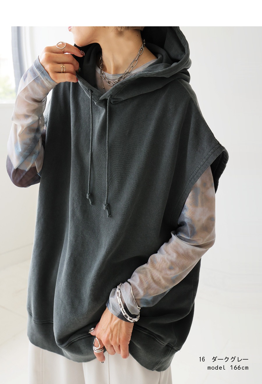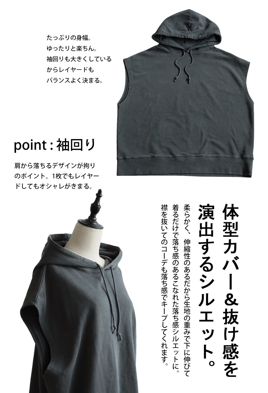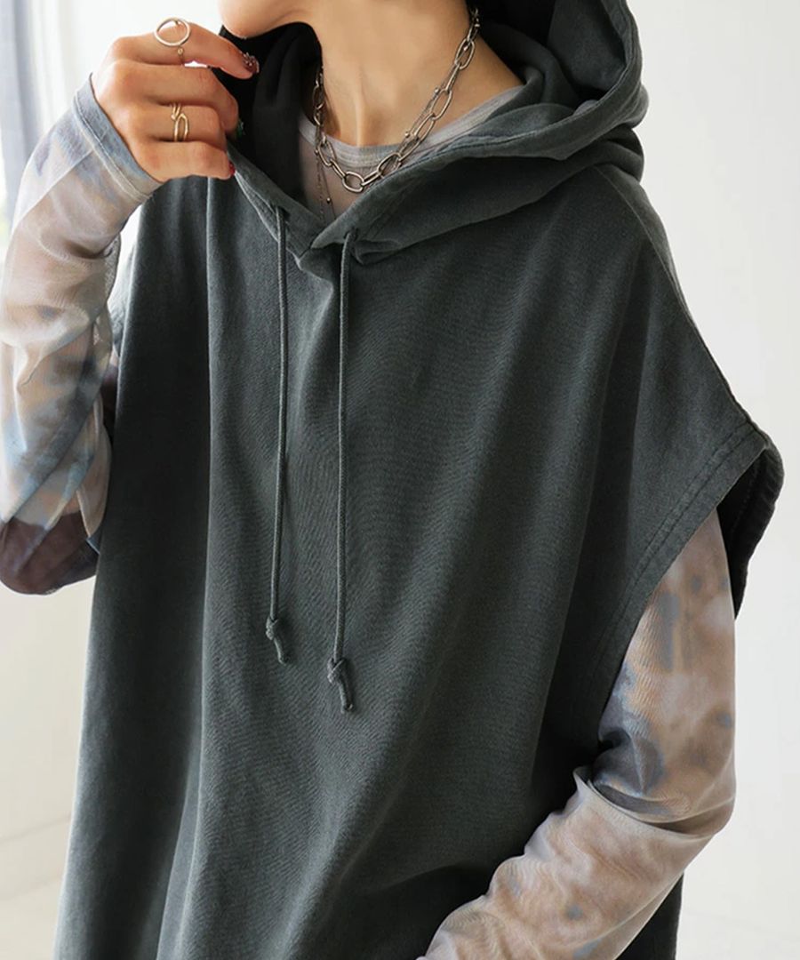 ヴィンテージ感漂う、こなれた印象のノースリーブフーディ。