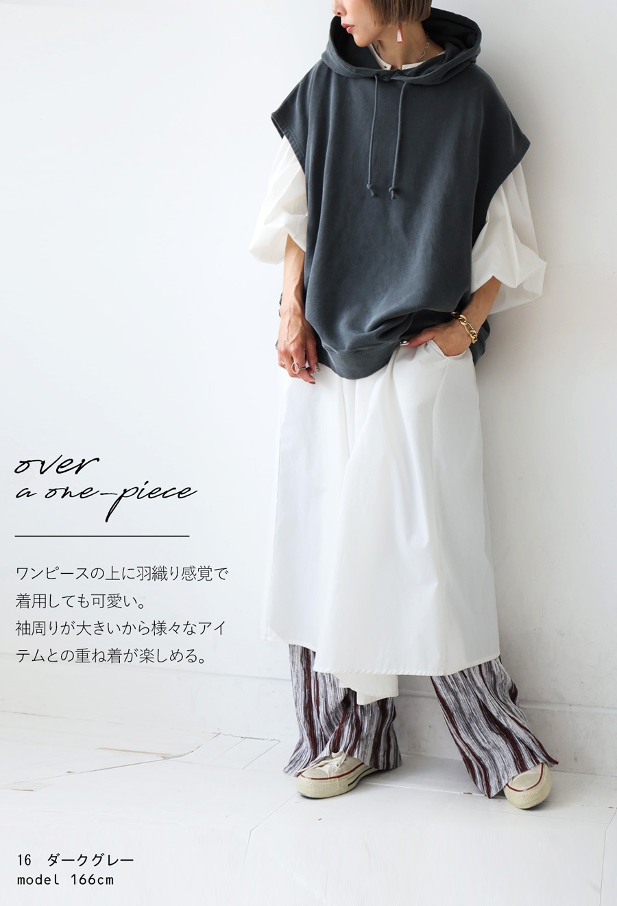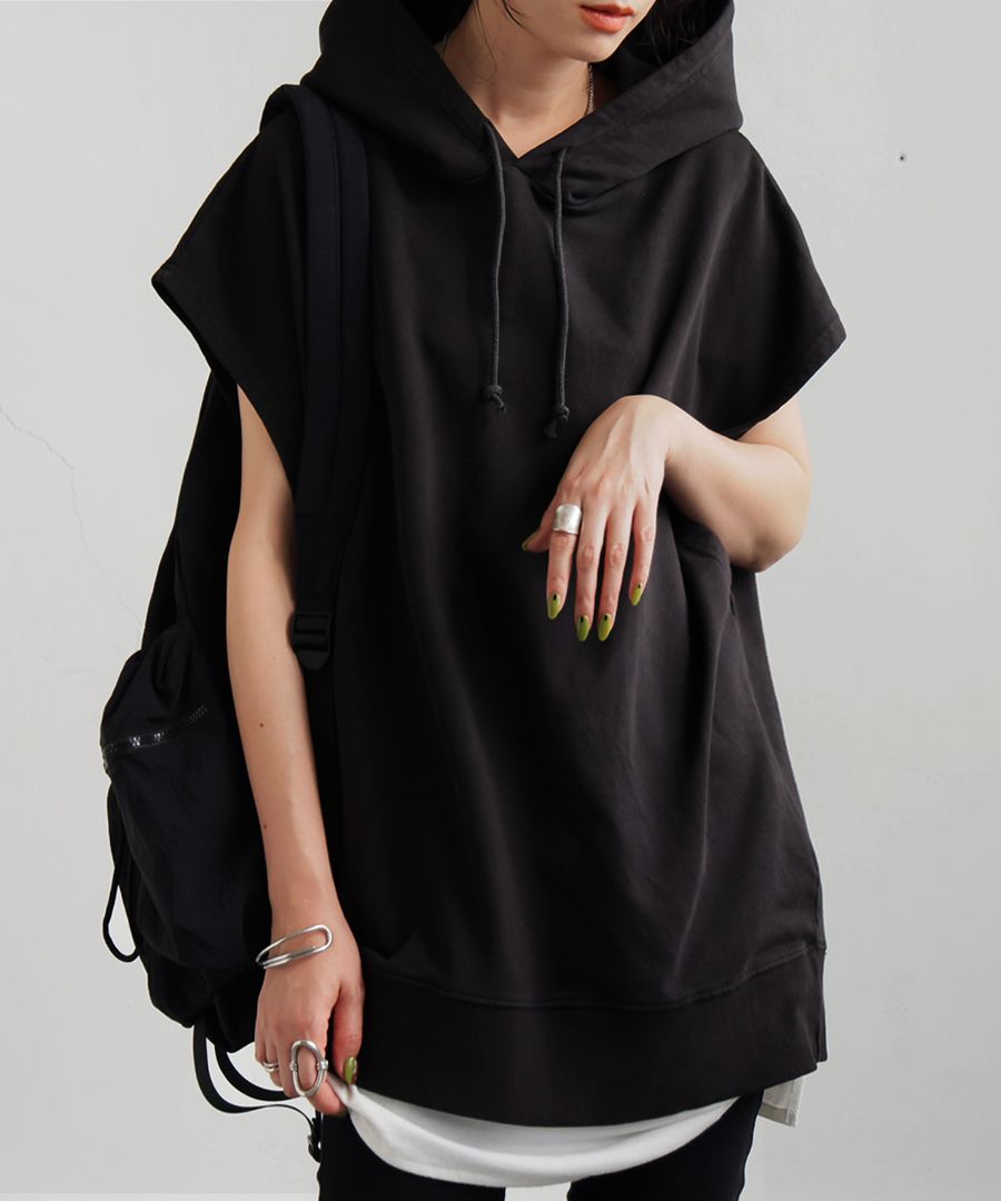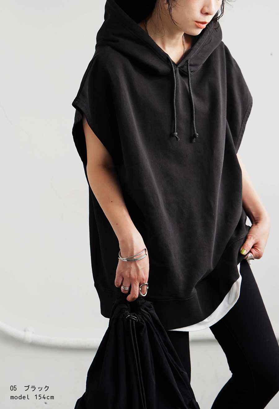 ヴィンテージ感漂う、こなれた印象のノースリーブフーディ。