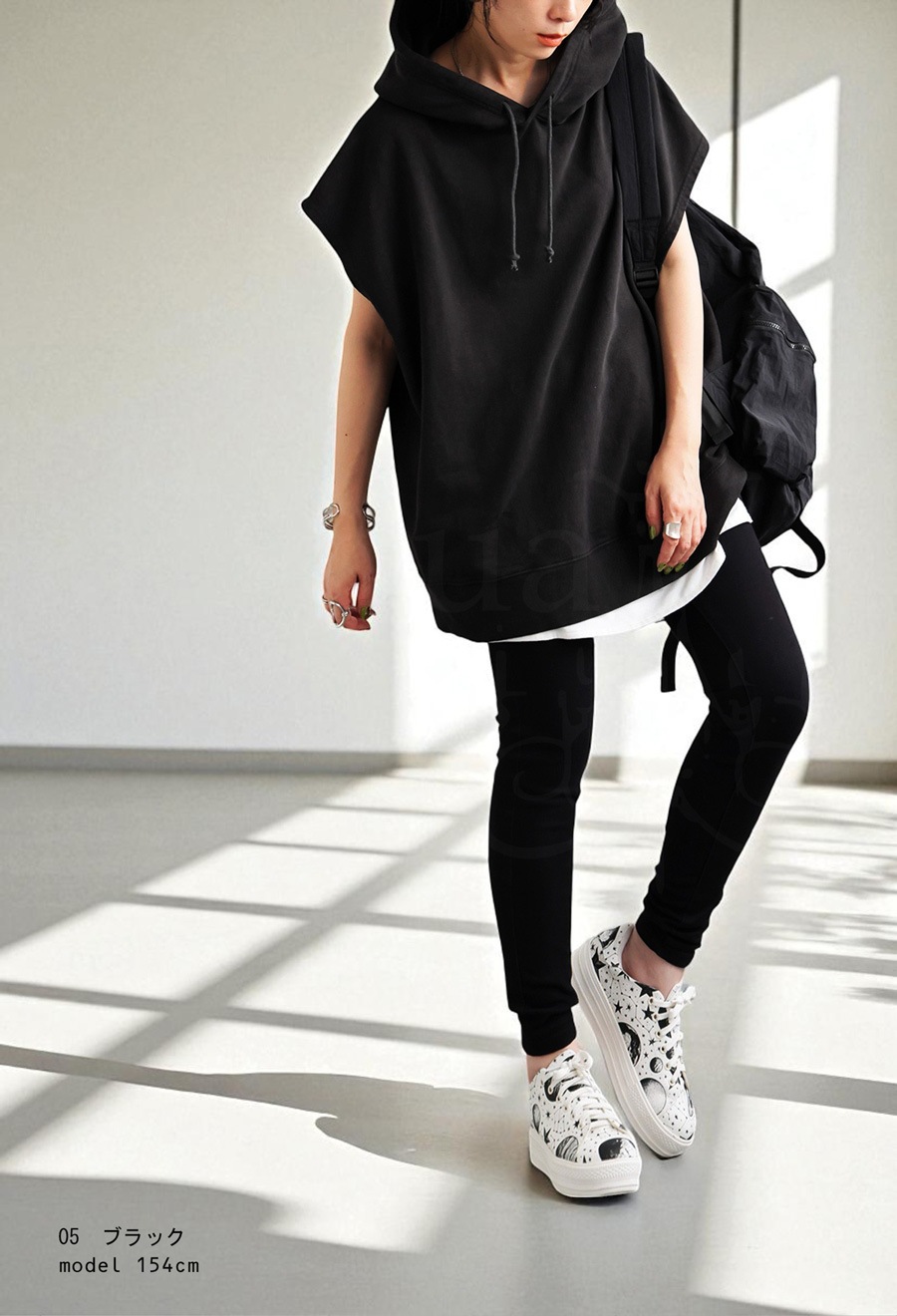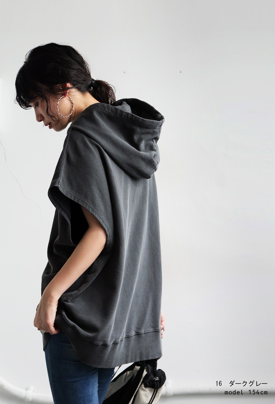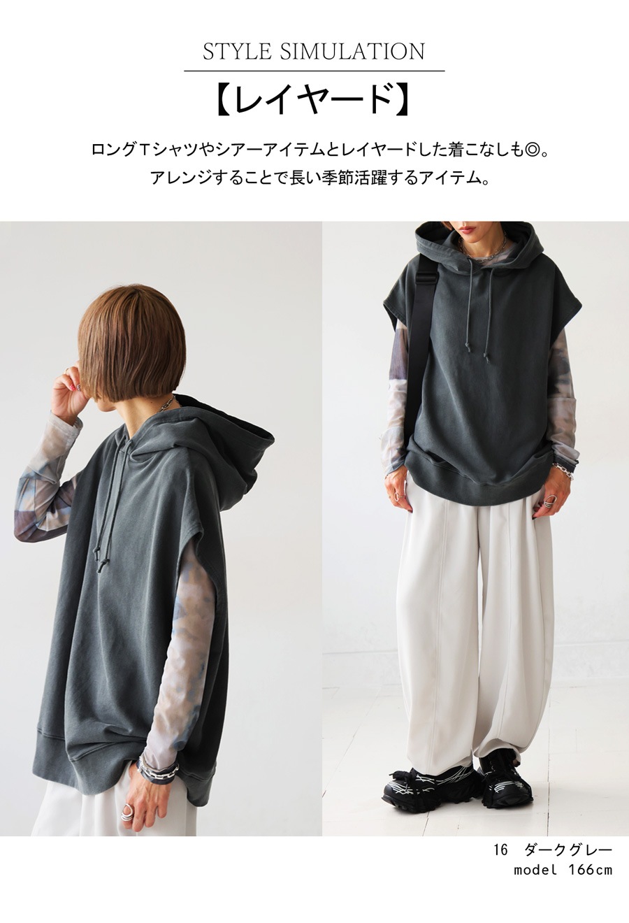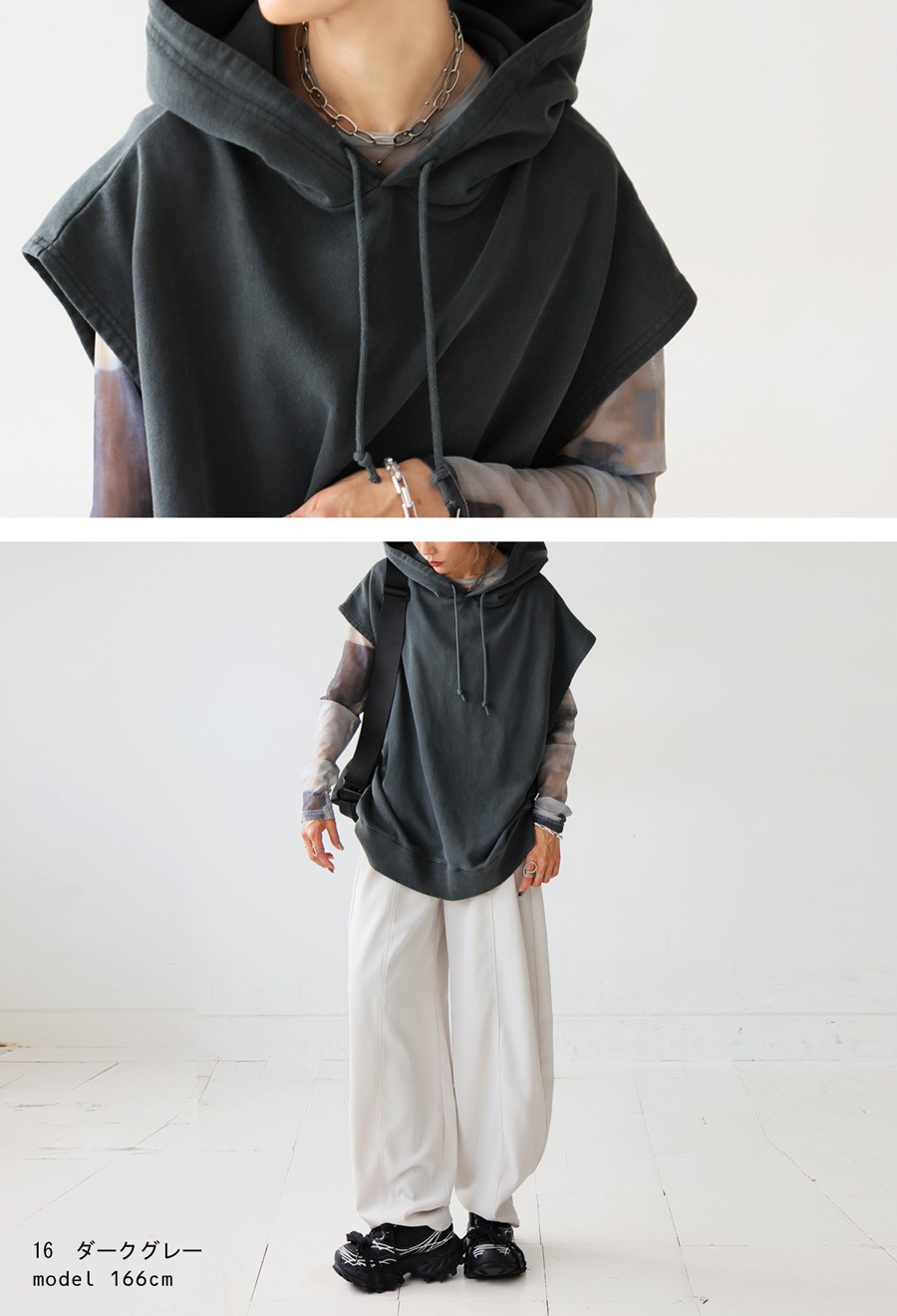 ヴィンテージ感漂う、こなれた印象のノースリーブフーディ。