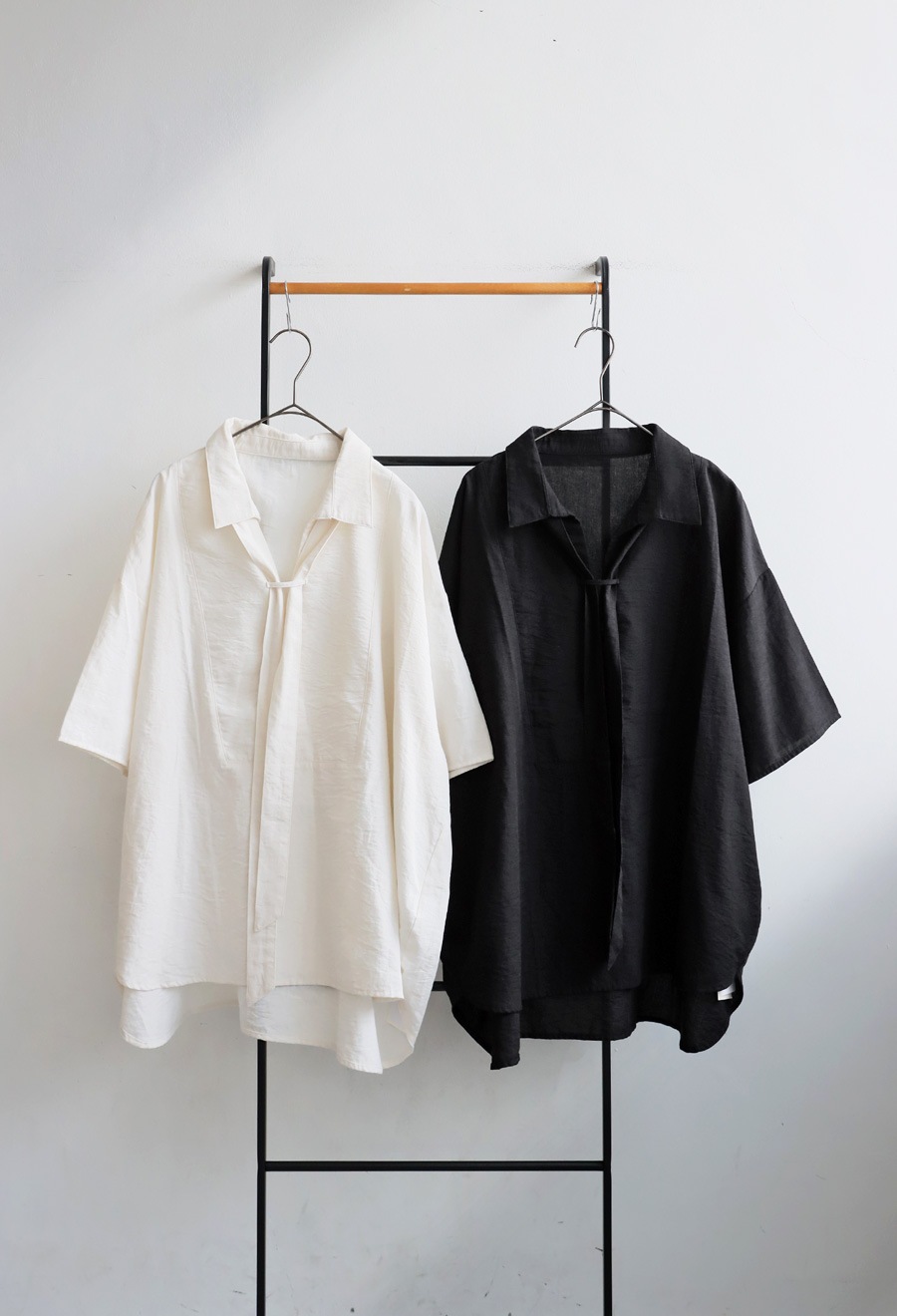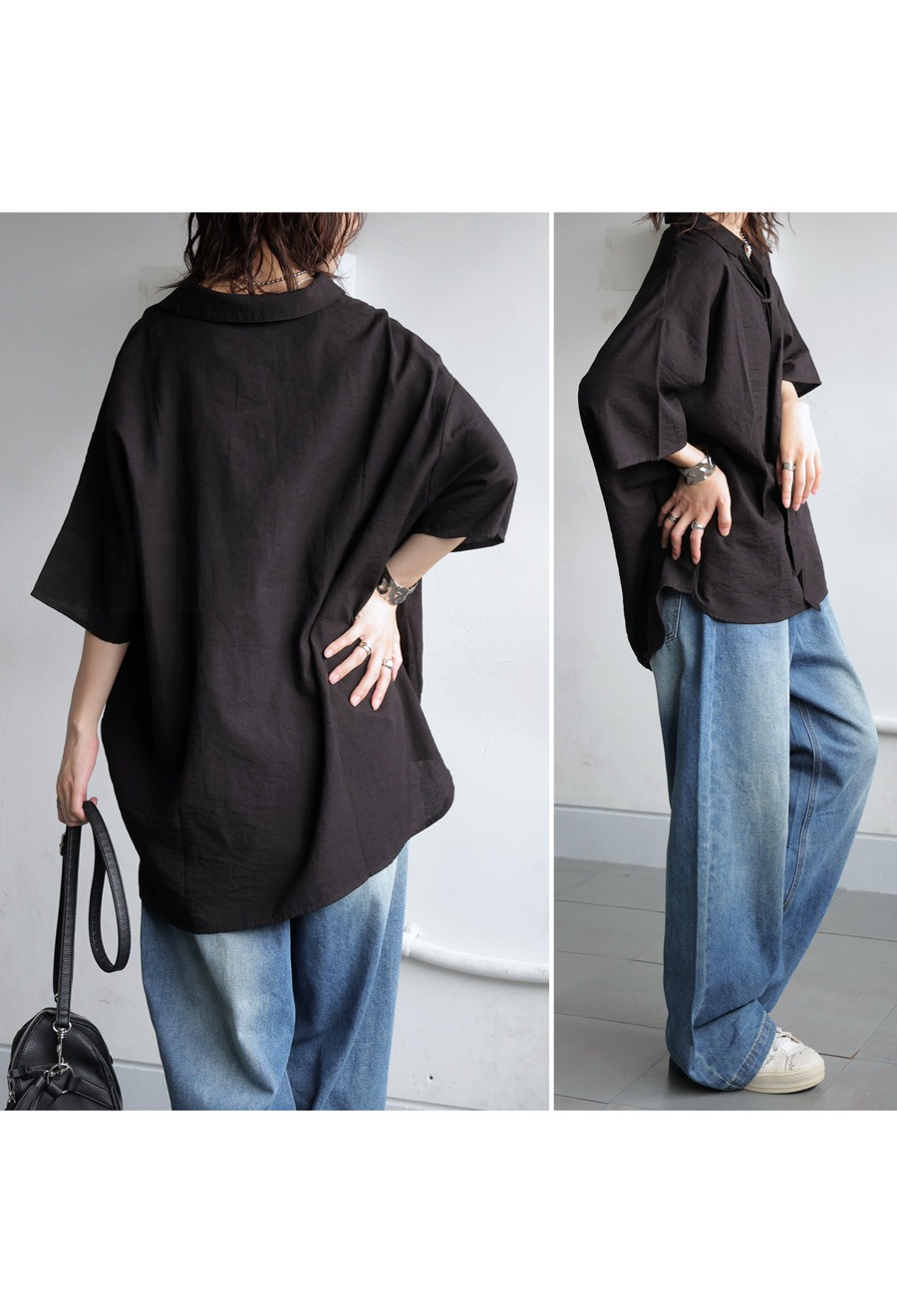 ほんのり広がりのあるワイドな身幅と、肩の落ちたシルエットがリラックスムードを演出し、体型カバーも叶えます。