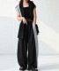 左右で異なる素材とカラーを組み合わせたアシンメトリーな切り替えデザインが、シンプルなコーディネートに立体感をプラス。