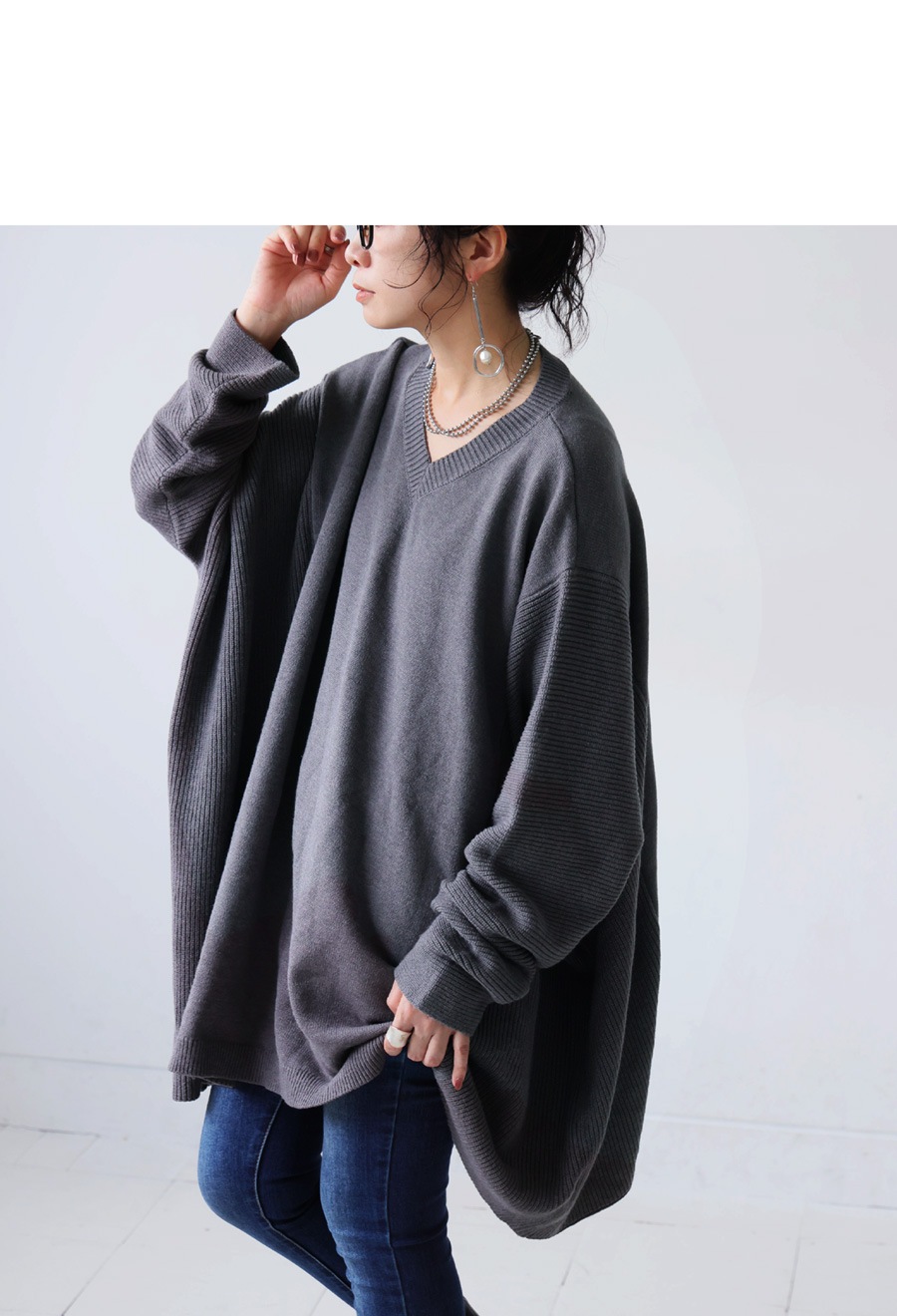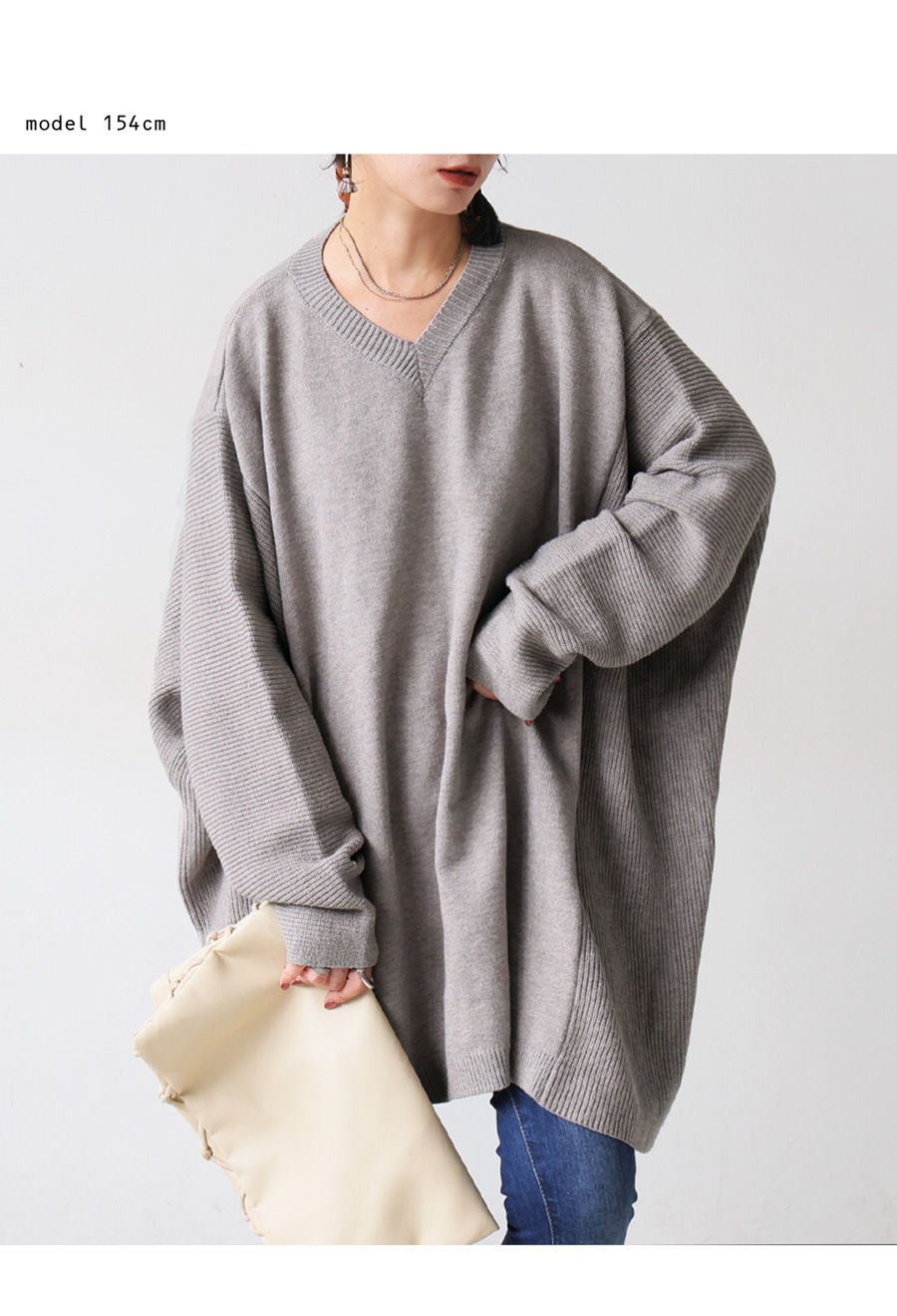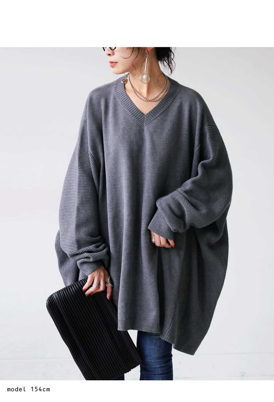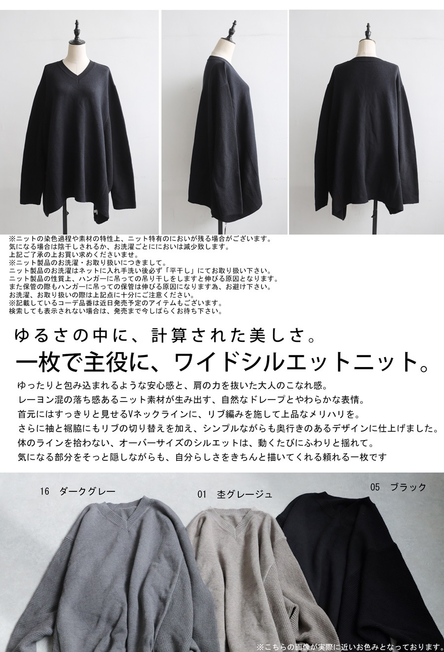 ニット最大20%OFF対象!4日20時~11日10時 Vネック ワイドニット レディース トップス ニット 送料無料・メール便不可(返品・キャンセル・交換不可)