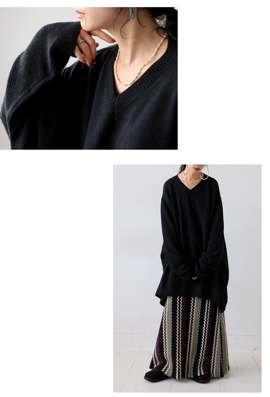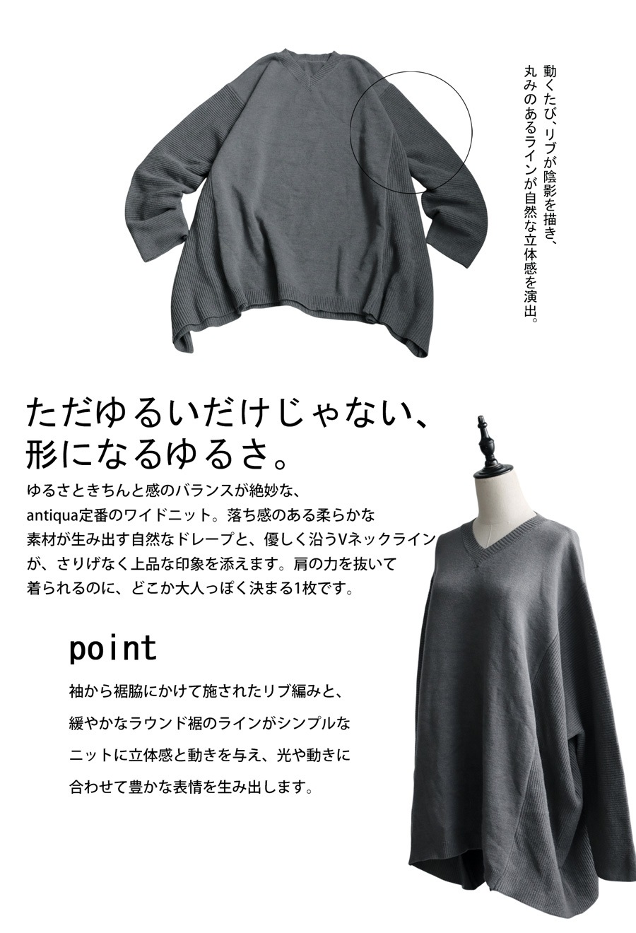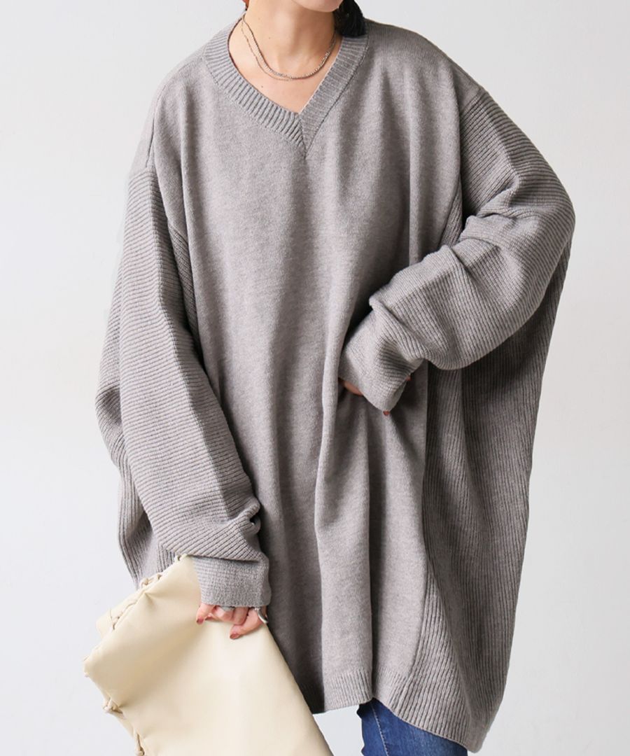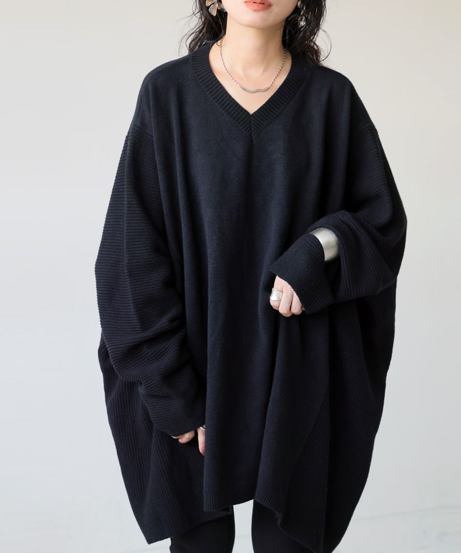 ニット最大20%OFF対象!4日20時~11日10時 Vネック ワイドニット レディース トップス ニット 送料無料・メール便不可(返品・キャンセル・交換不可)