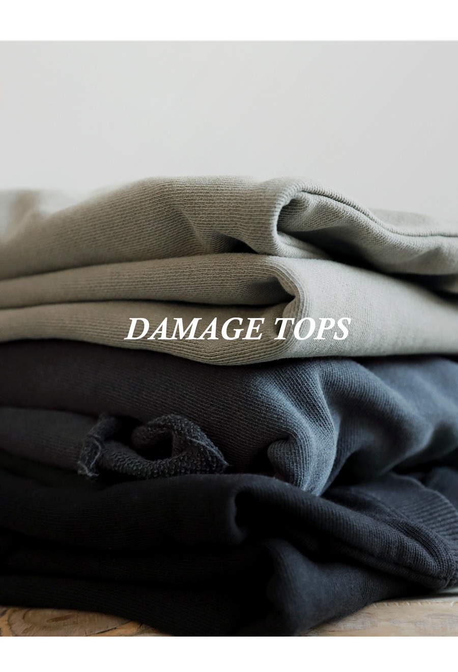 ダメージ加工がヴィンテージ風のニュアンスを生み、カジュアルながらも大人の雰囲気に。