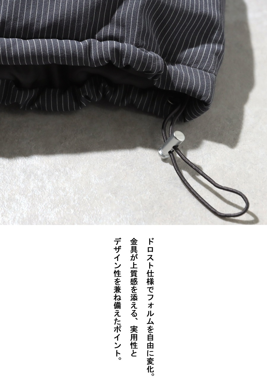 裾のドロスト仕様によりシルエットの調整が可能で、女性らしいバランスを演出できます。