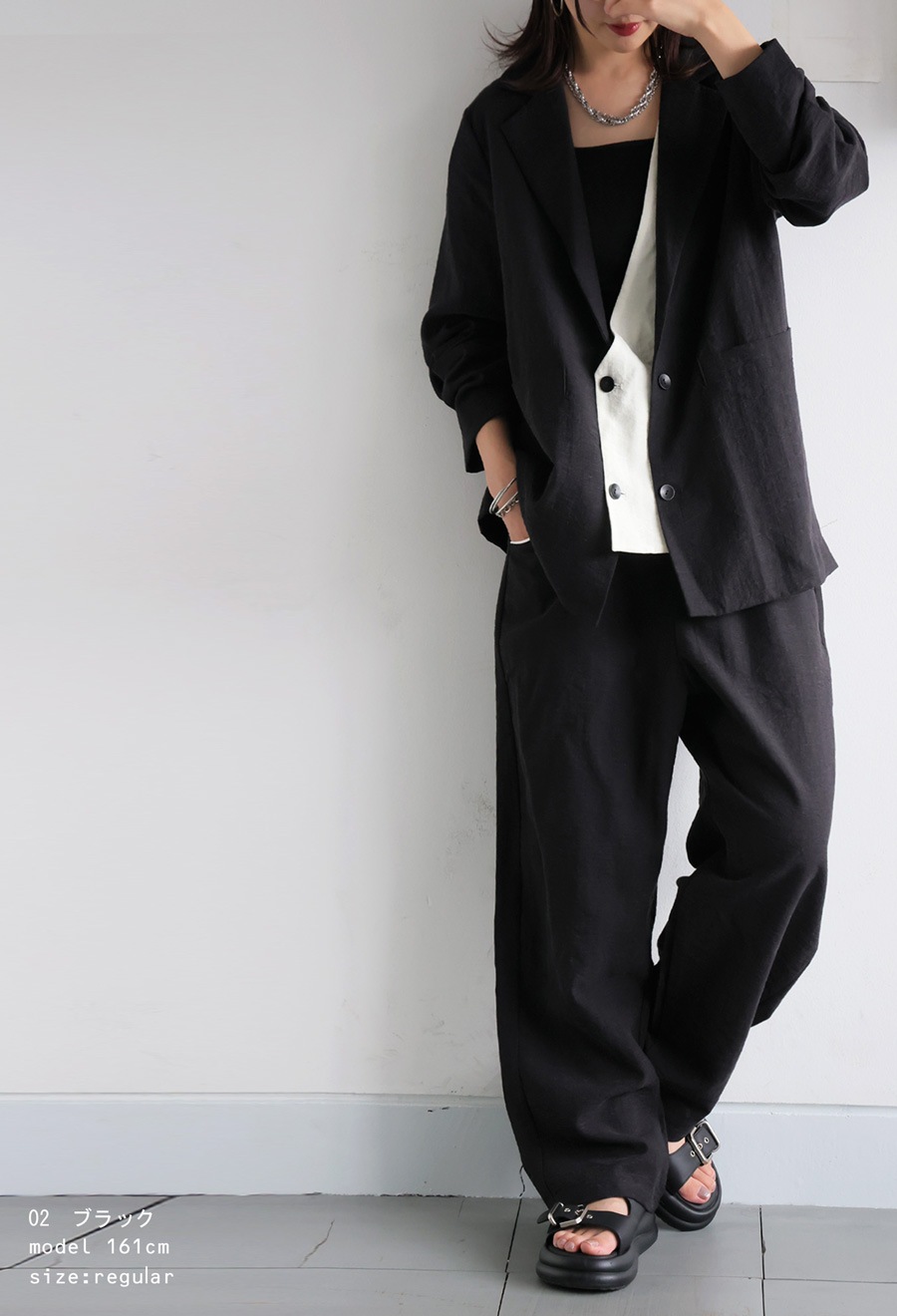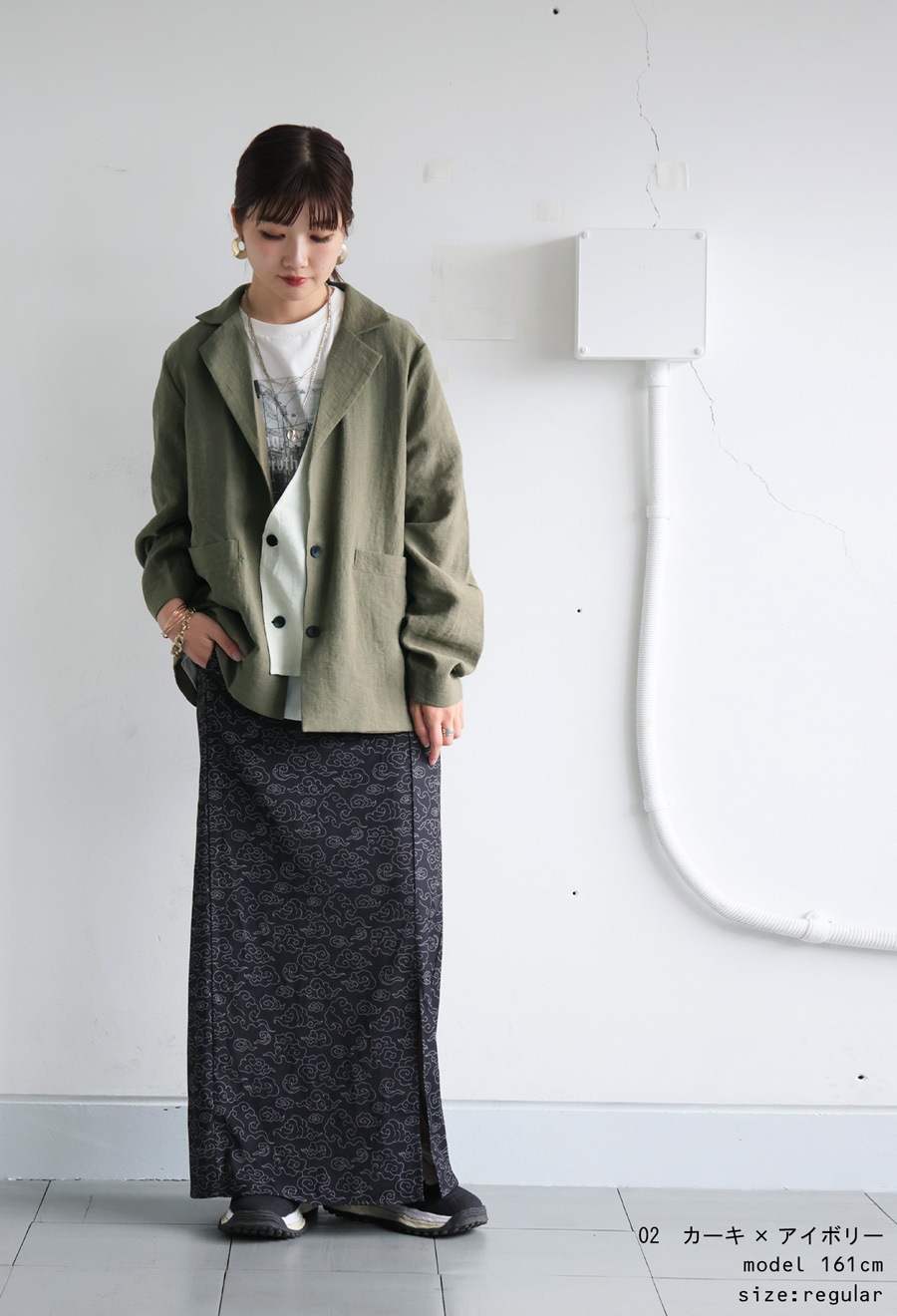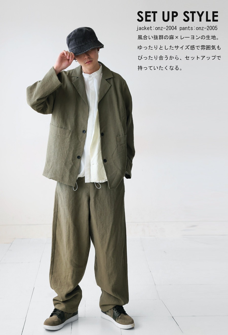 麻のシャリ感とレーヨンのとろみ感を合わせ持ち、肌なじみが良く、風合いと落ち感のバランスが絶妙です。
