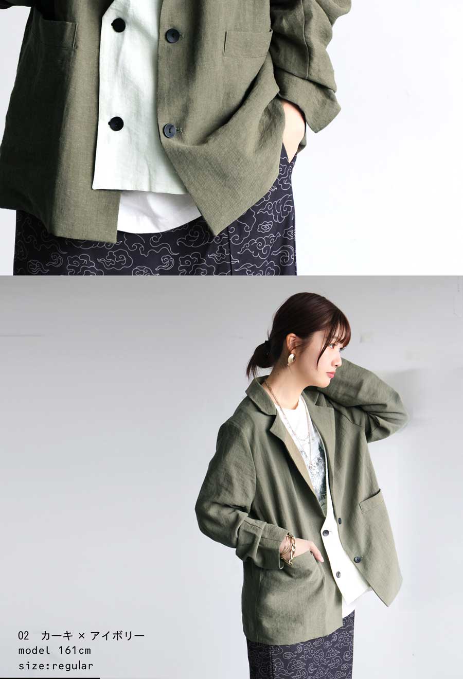 配色ベスト風ジャケット レディース ジャケット リネン混 送料無料・メール便不可