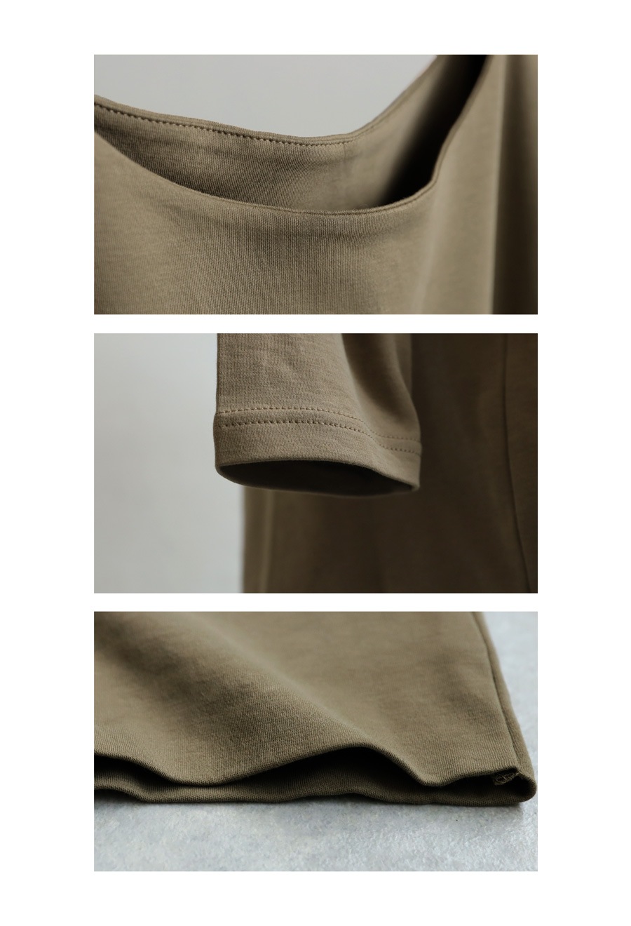 高密度に編み立てたコンパクトスムースのコットン素材は、さらっと軽やかでとろみ感のある着心地。