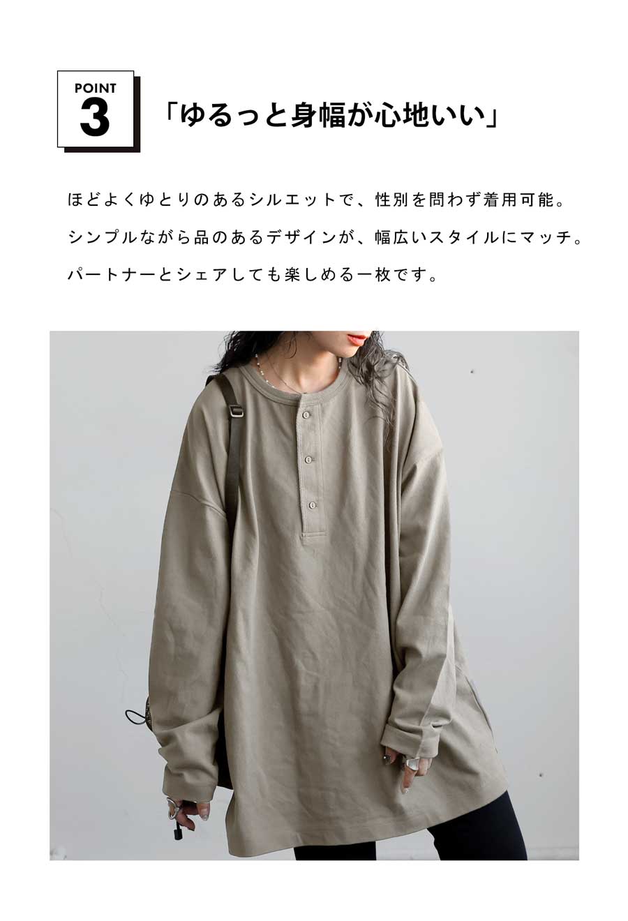 ユニセックス対応で、メンズ品番とリンクコーデも楽しめます。
