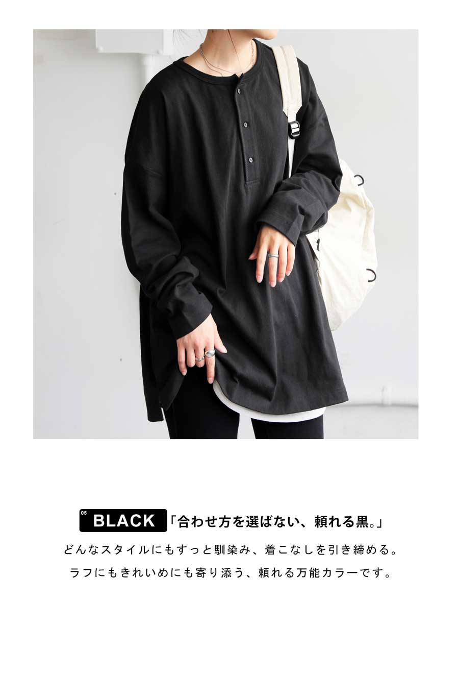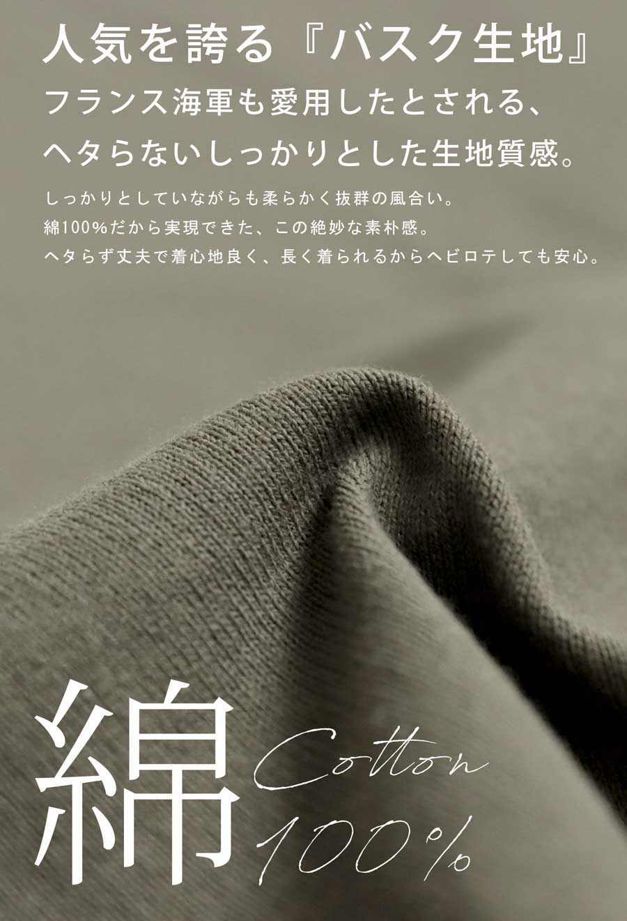綿100%のしっかりした生地感で、洗っても型崩れしにくく、デイリー使いに最適です。