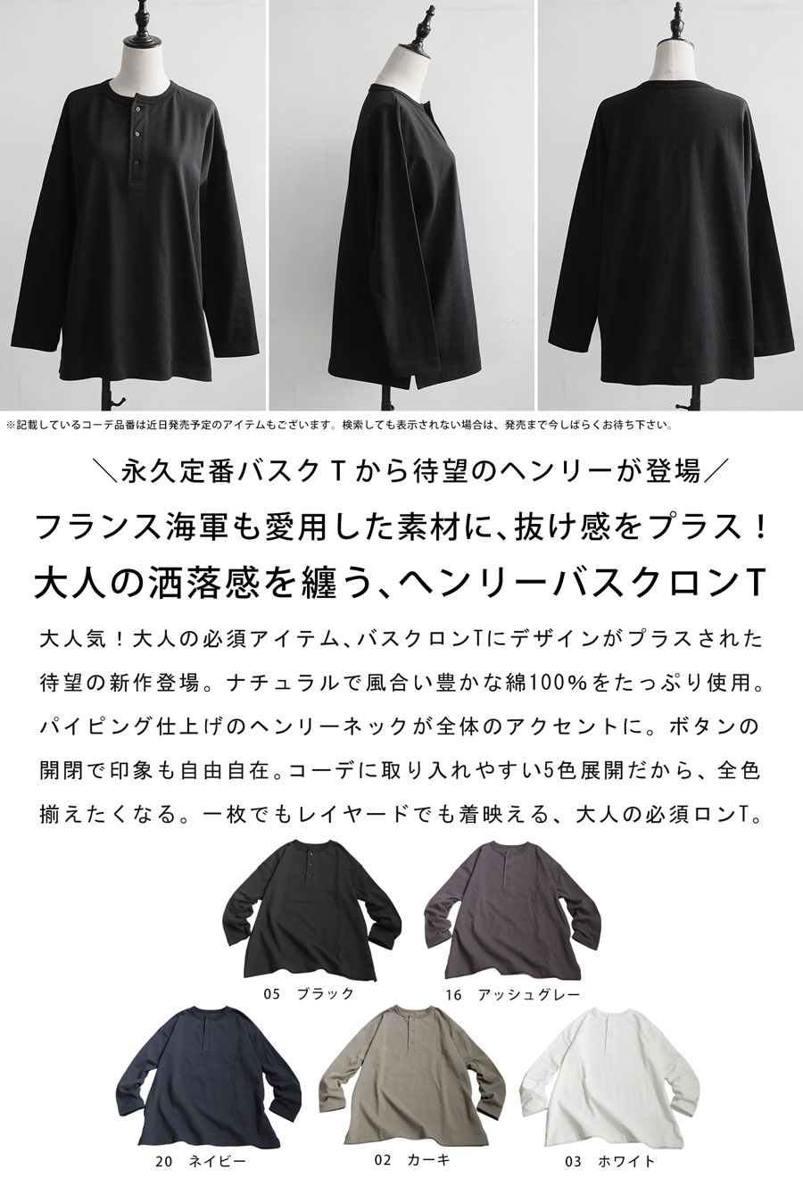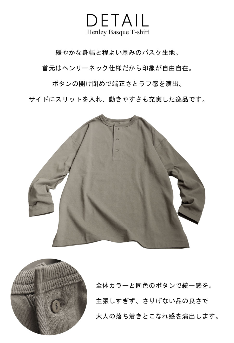 「絶対使える、春の即戦力」1,000円OFF対象! ヘンリーネック バスク ロンT レディース 長袖 綿100・(500)メール便可