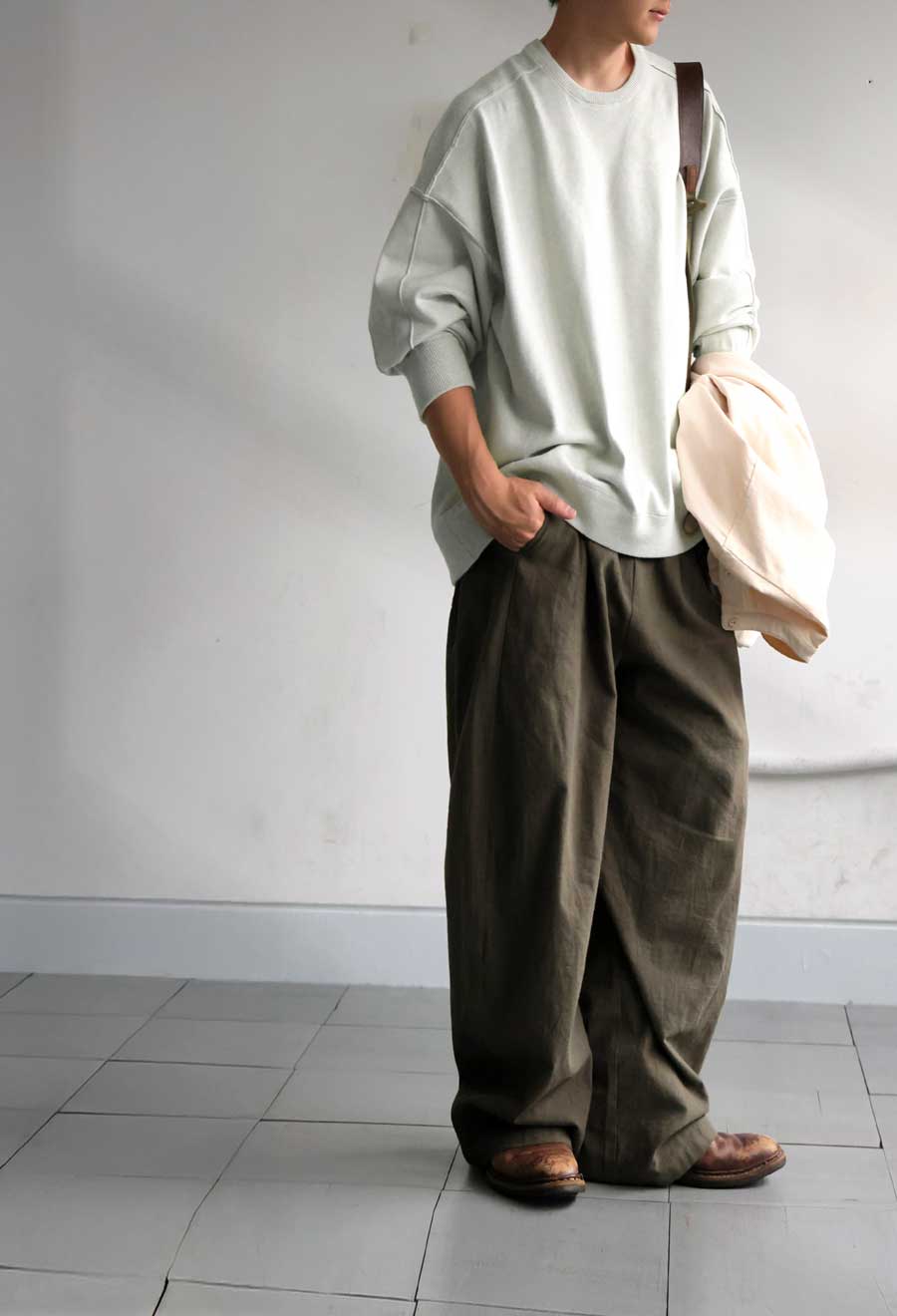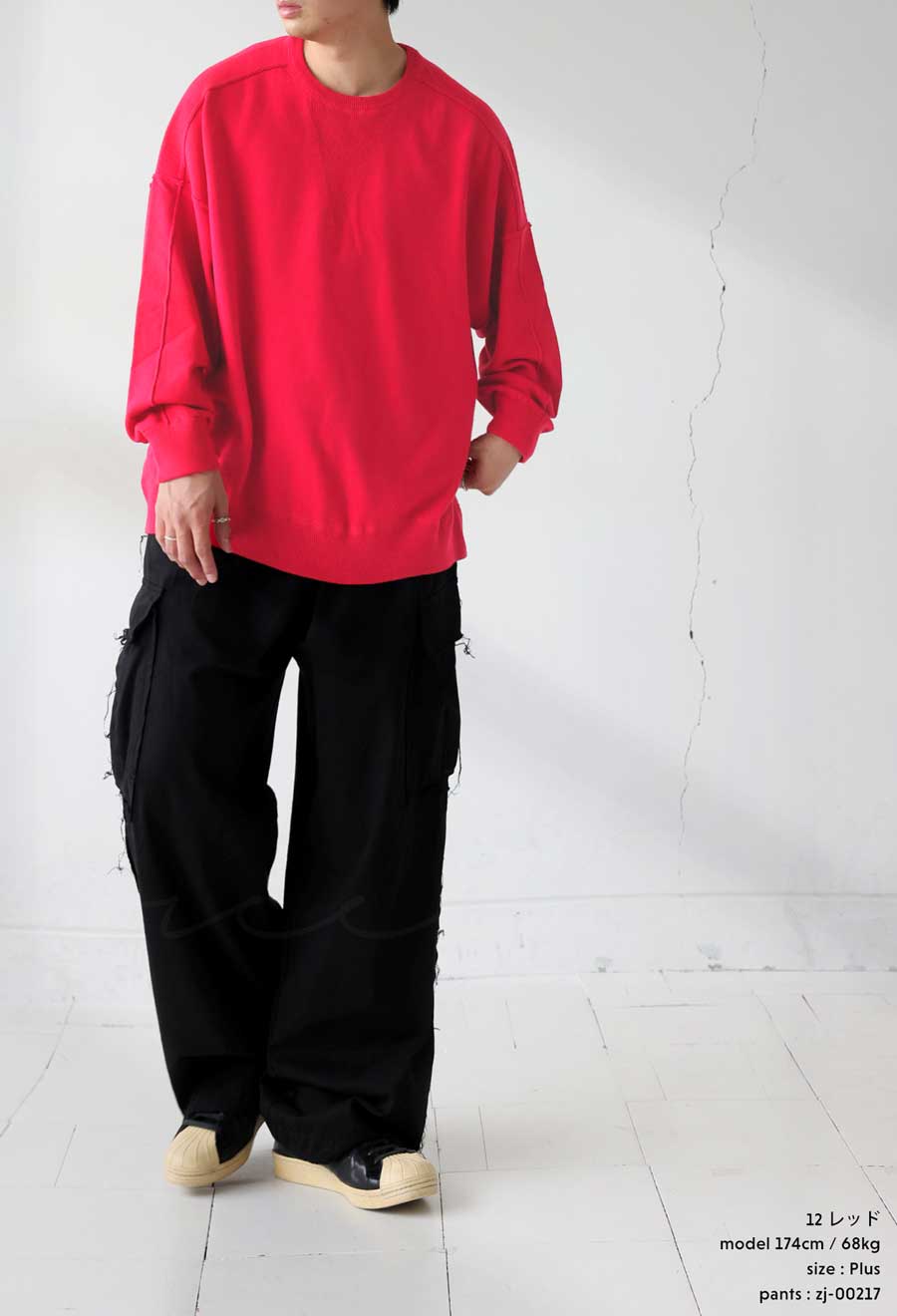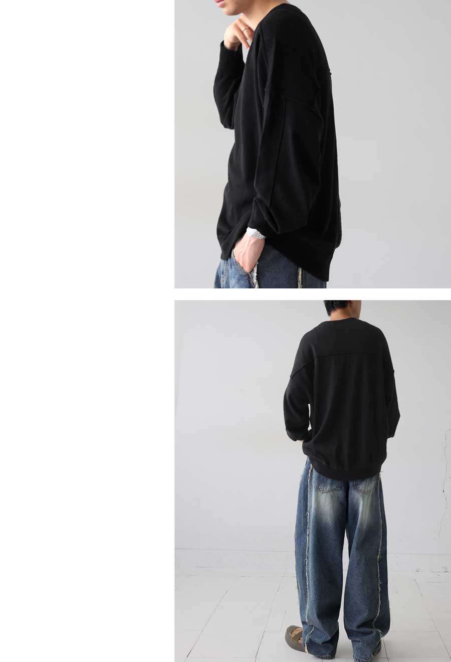 リブ切替や縫い代を表に出した仕様が、他にはないアクセントになっています。