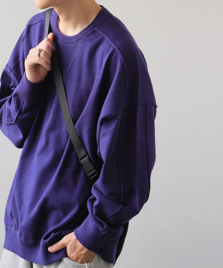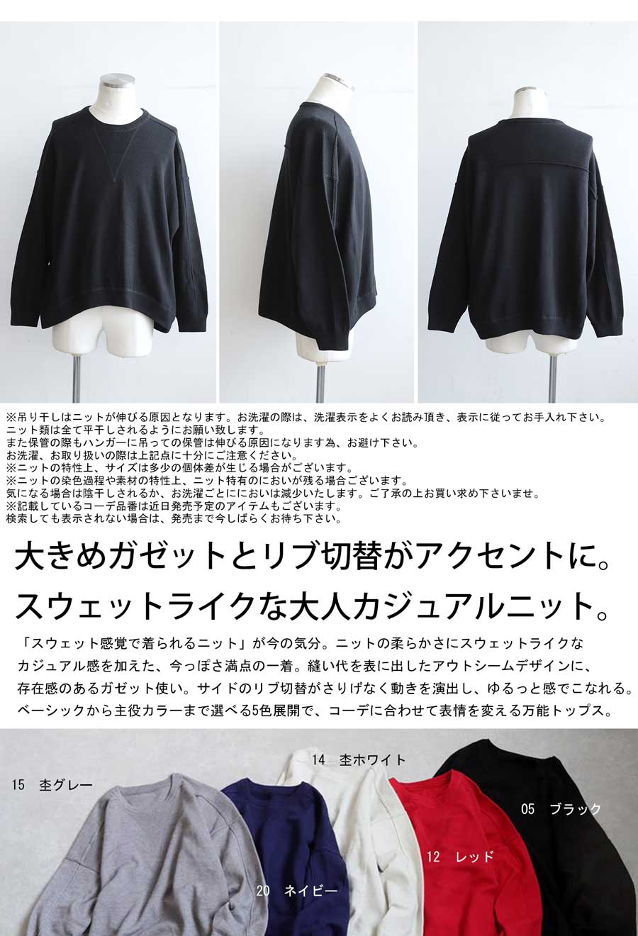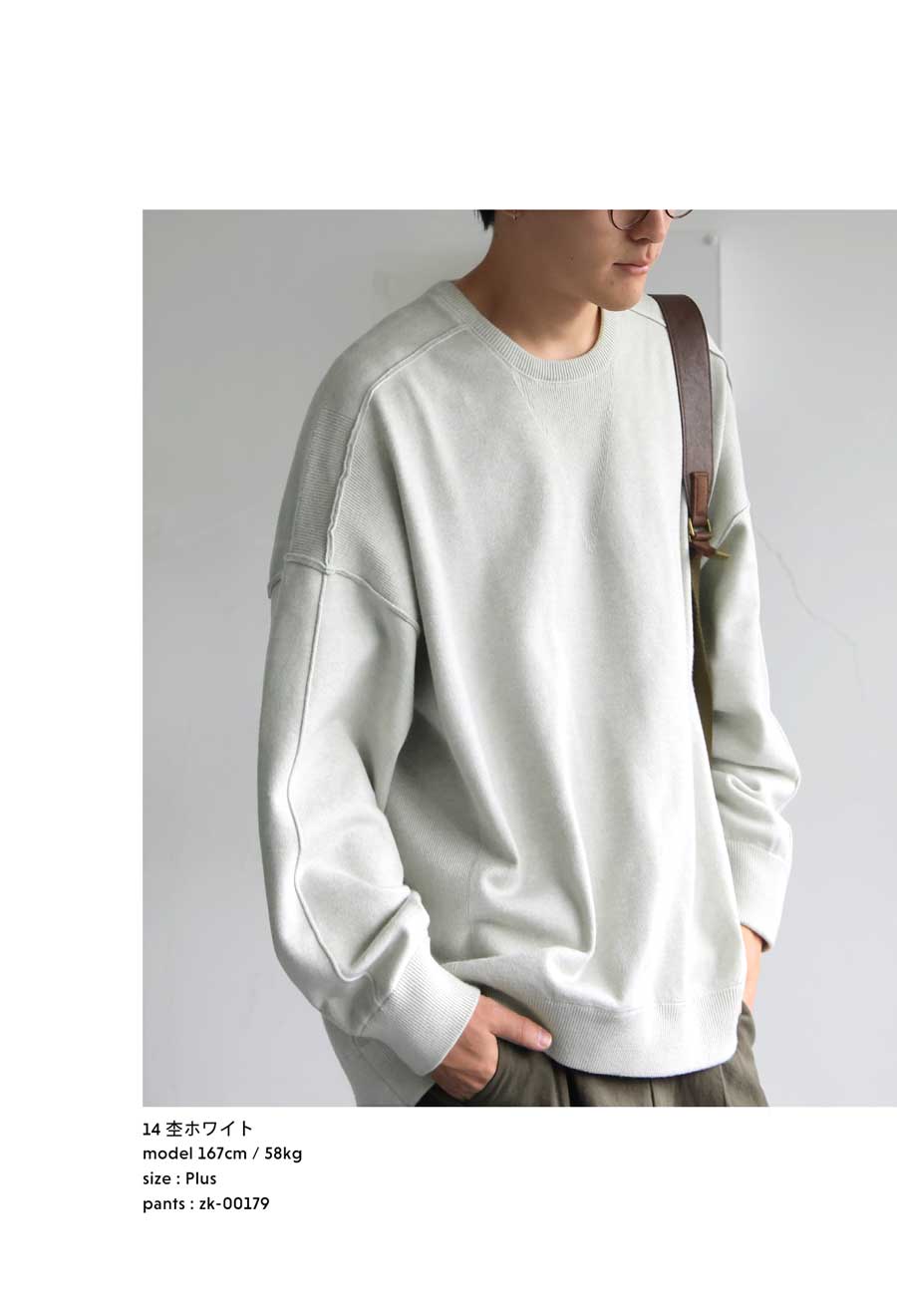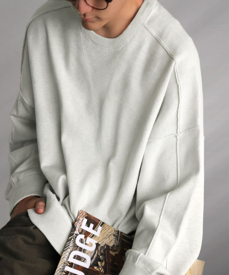 スウェットのような見た目と快適さを兼ね備えた、スウェットライクなニットトップス。
