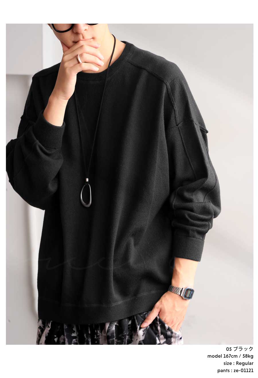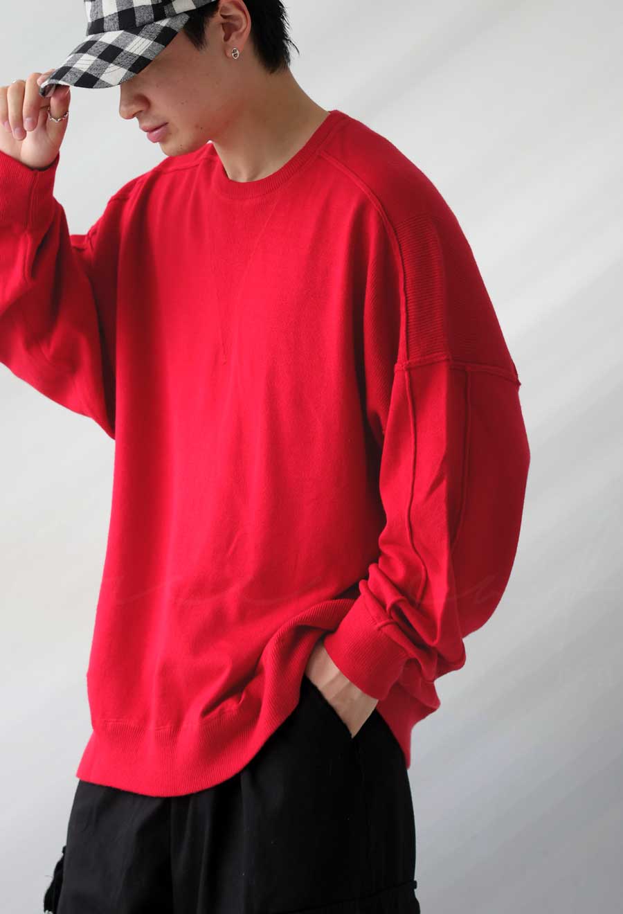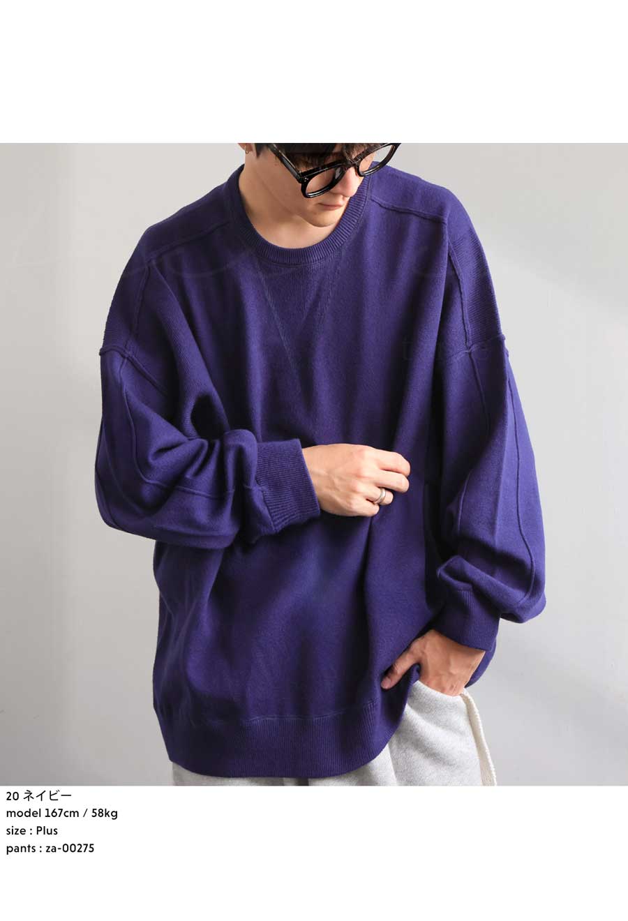 スウェットのような見た目と快適さを兼ね備えた、スウェットライクなニットトップス。