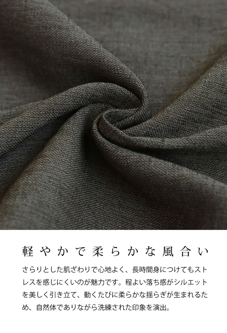 ストンと落ちる丈感と、程よい落ち感のある綿混素材が、動くたびに柔らかな揺らぎを生み出します。