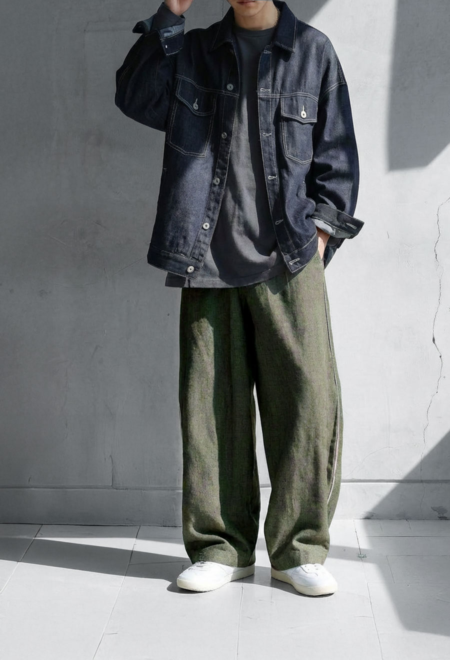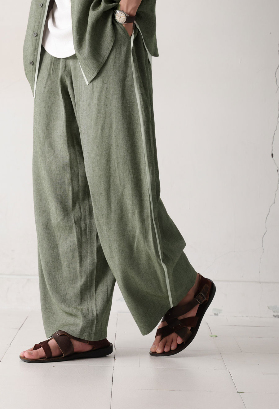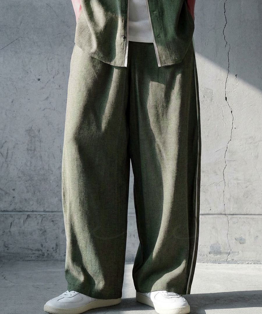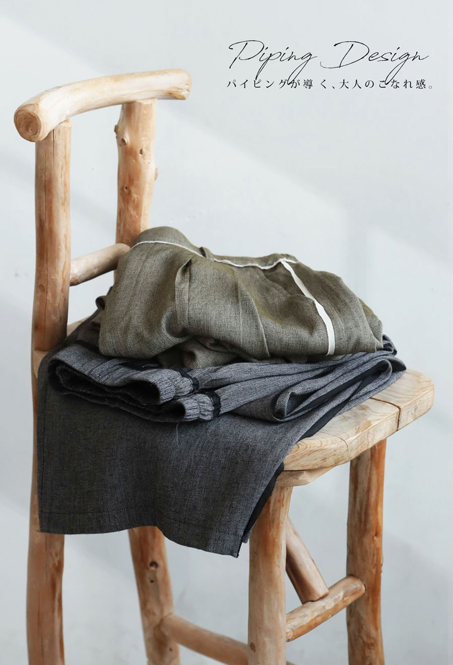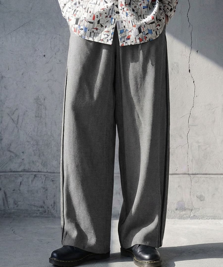 抜け感のあるパイピングデザインが印象的な、ストレートワイドパンツが登場。
