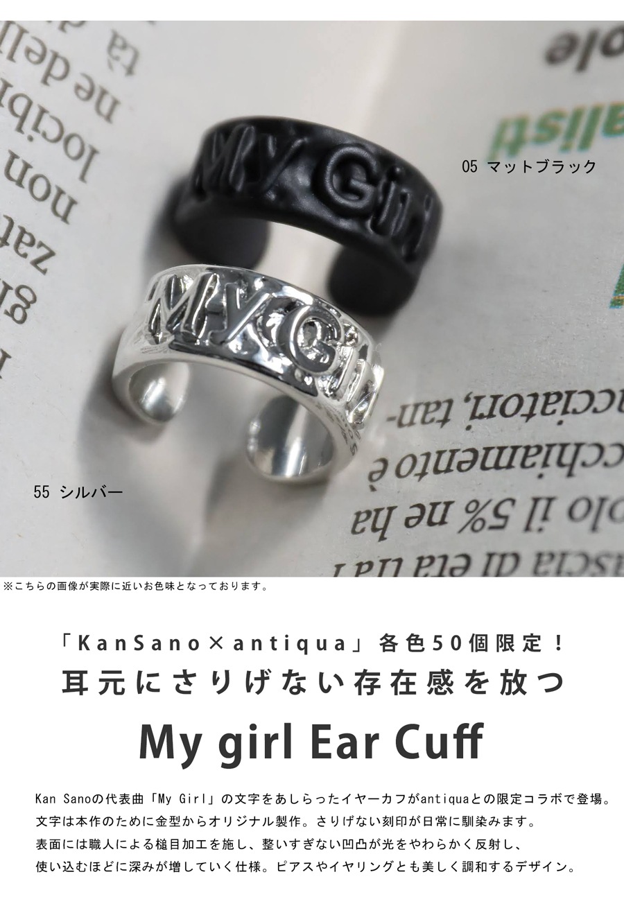 人気アーティストKan Sanoとantiquaのコラボレーションで誕生した、数量限定のオリジナルイヤーカフ「My Girl」。