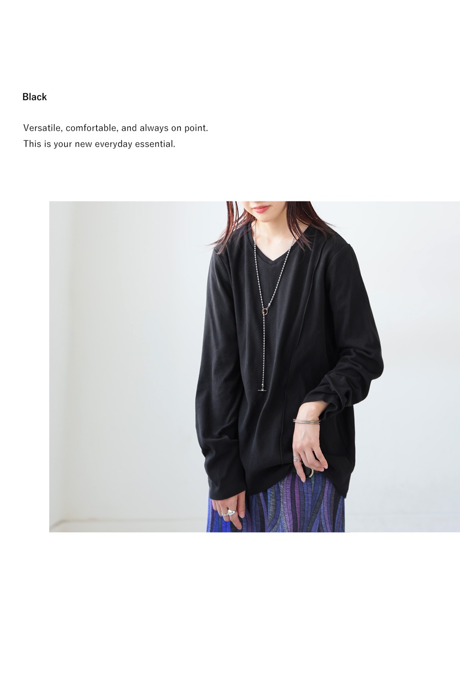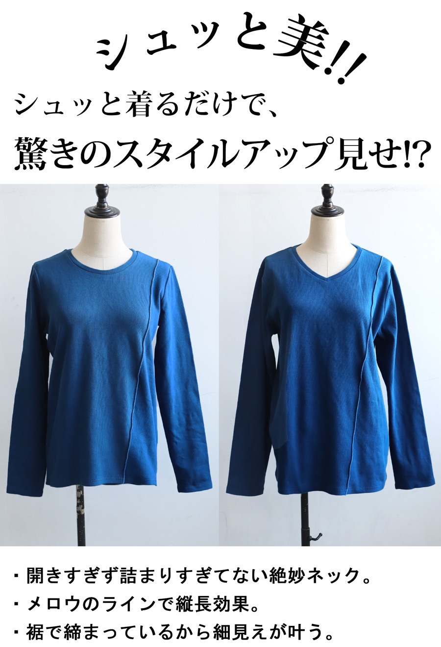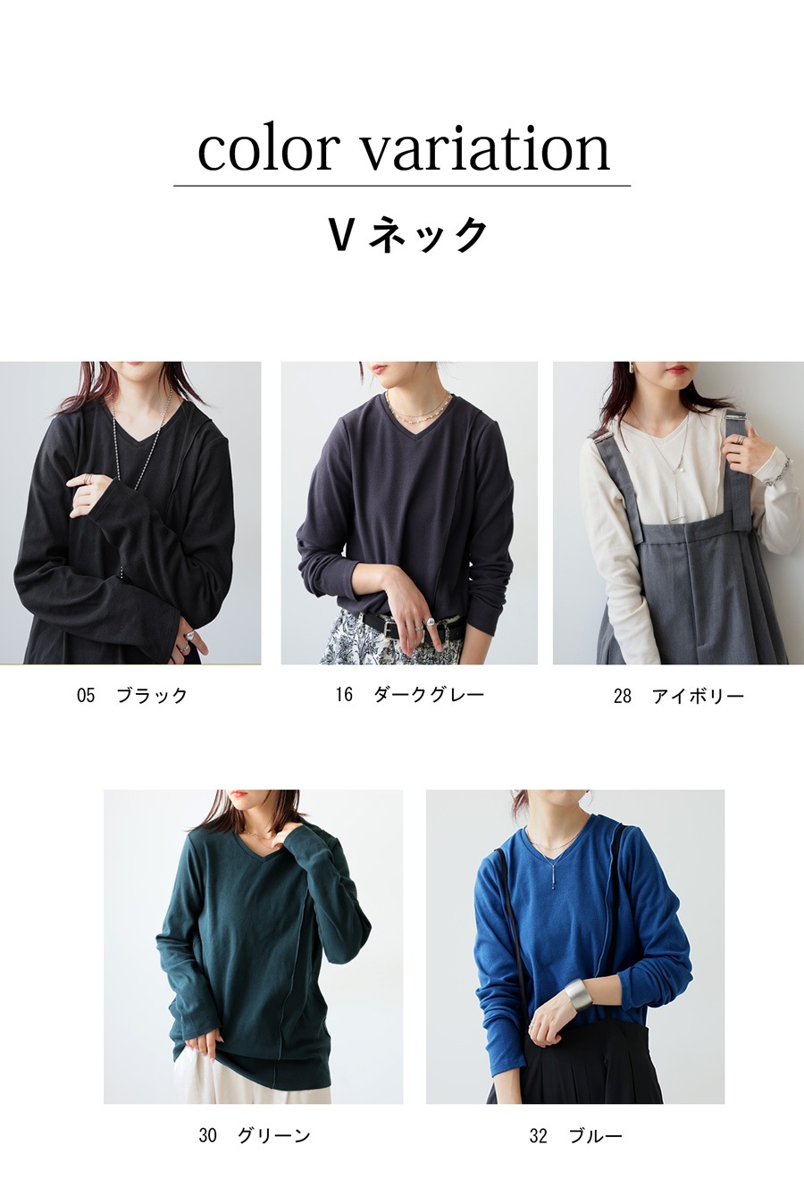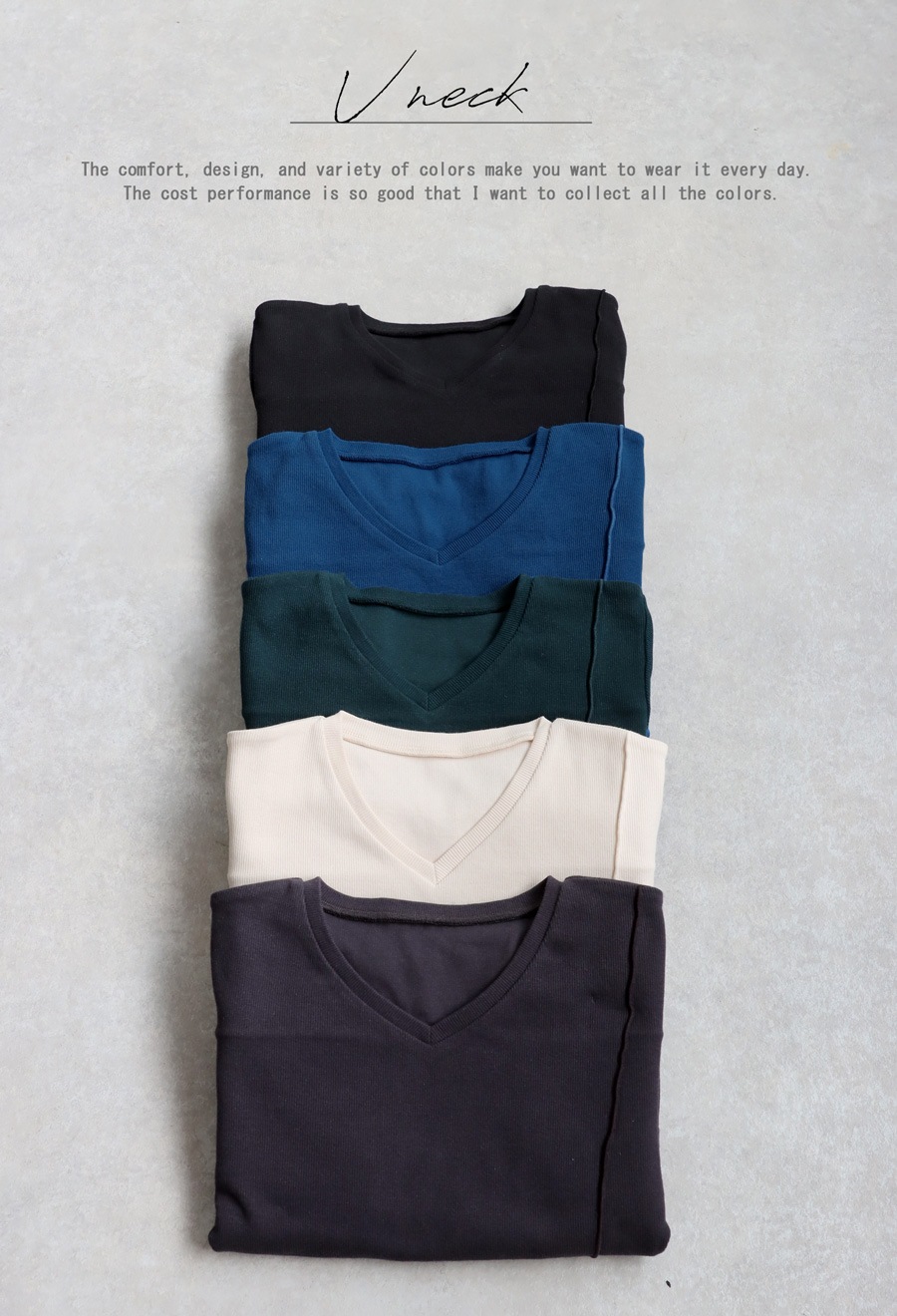 ネックラインはUネックとVネックの2パターンから選べ、印象の異なる着こなしを楽しめます。