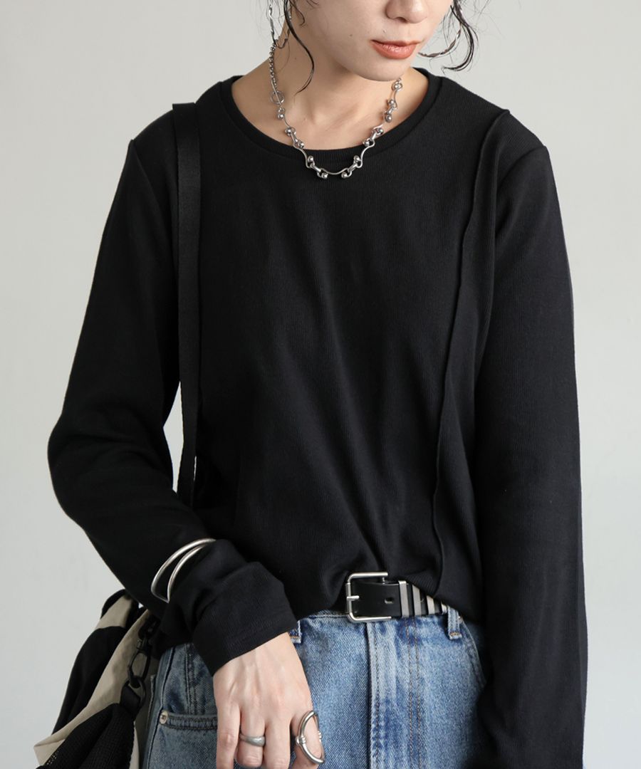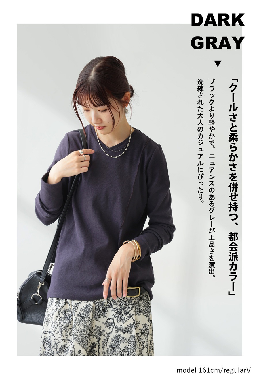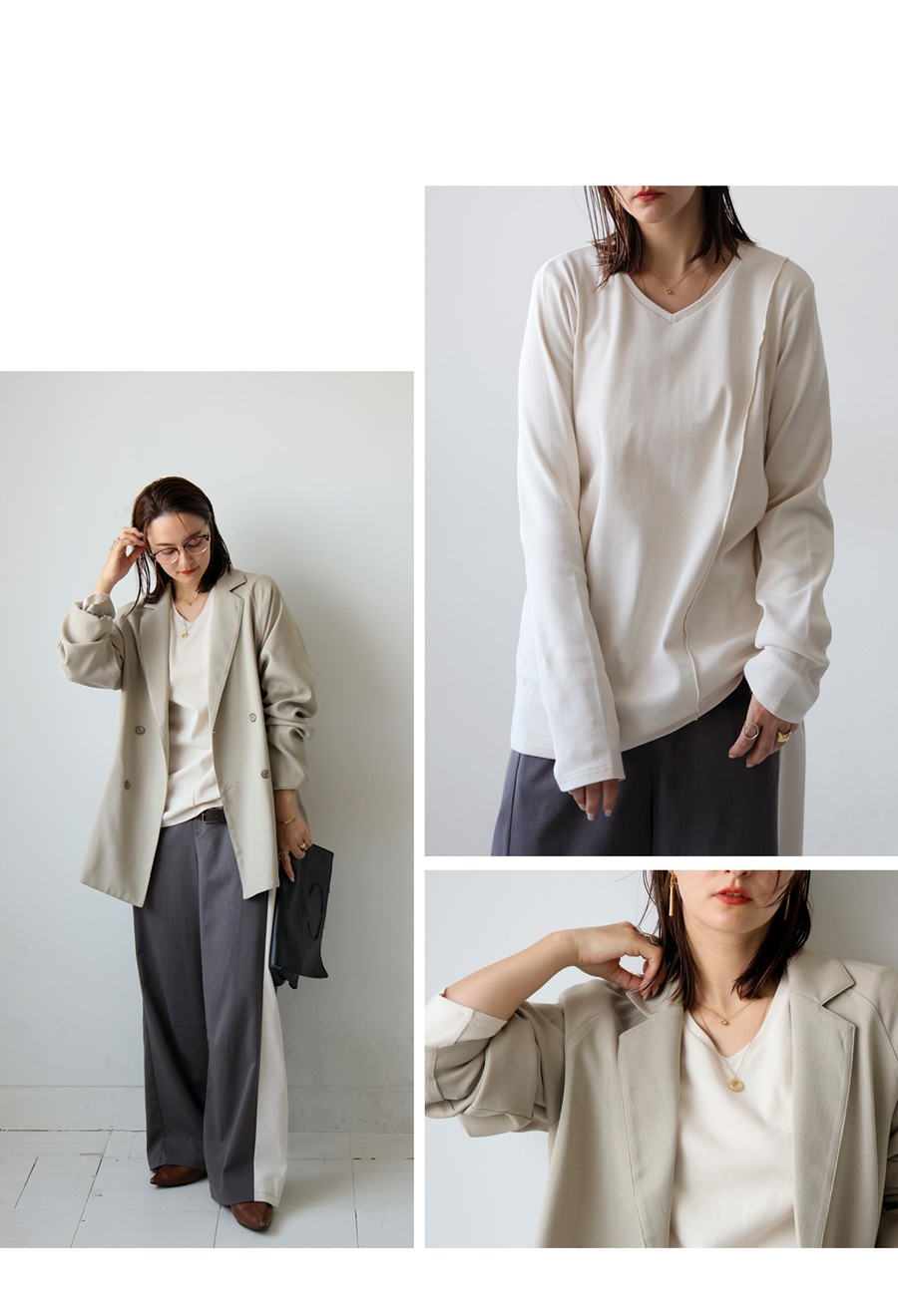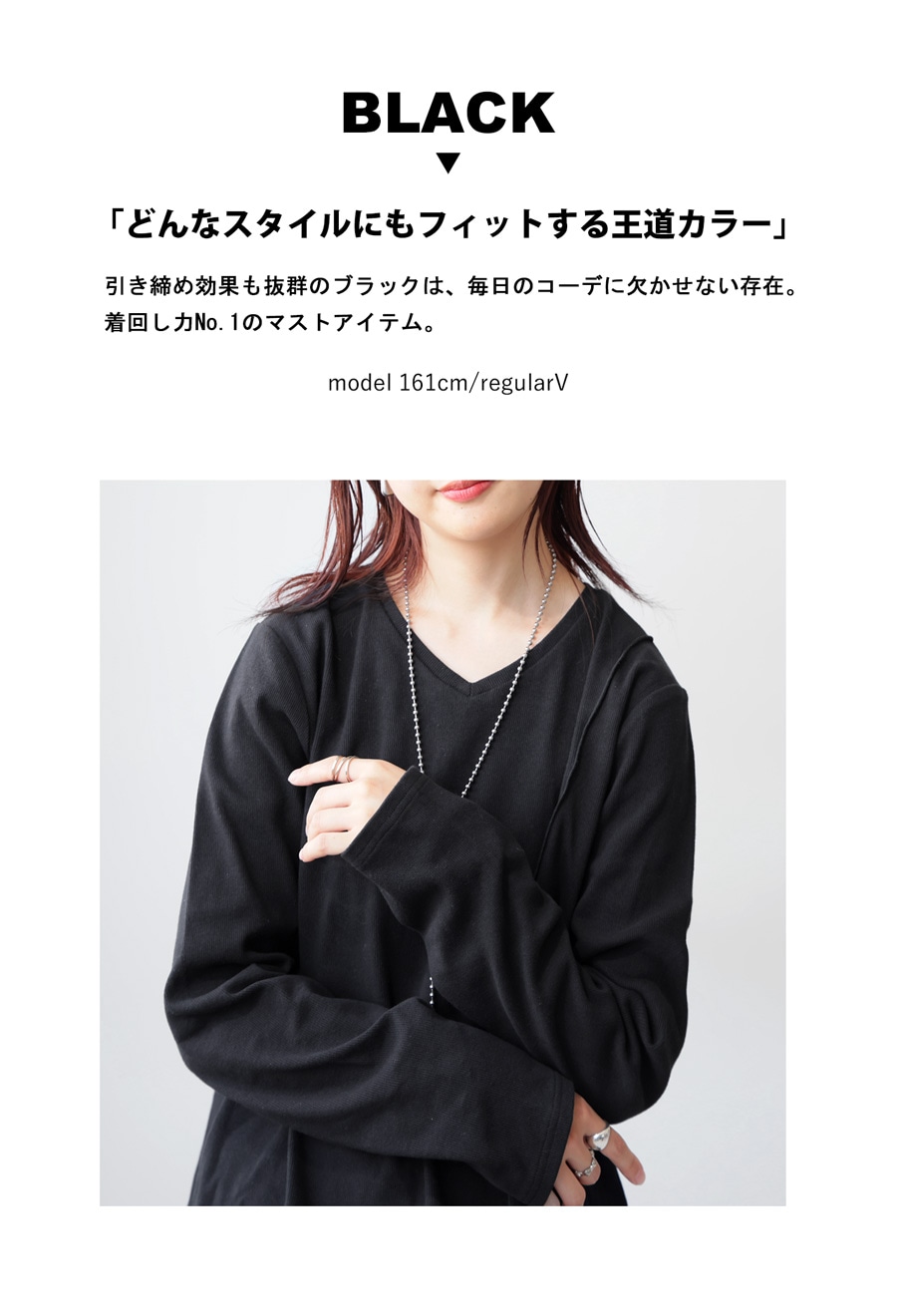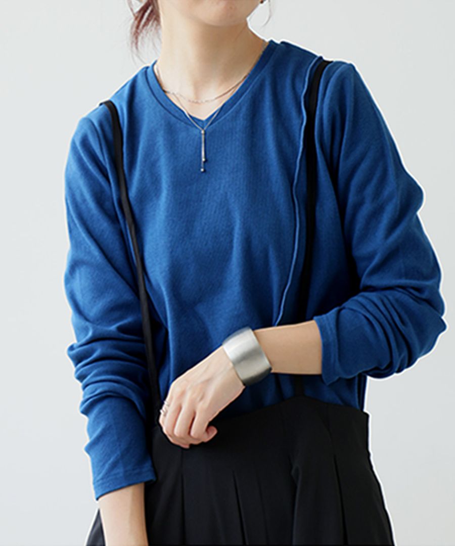 ネックラインはUネックとVネックの2パターンから選べ、印象の異なる着こなしを楽しめます。
