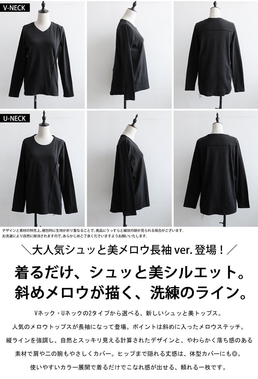 シュッと美シリーズ メロウデザイントップス レディース 長袖・(100)メール便可(返品・キャンセル・交換不可)