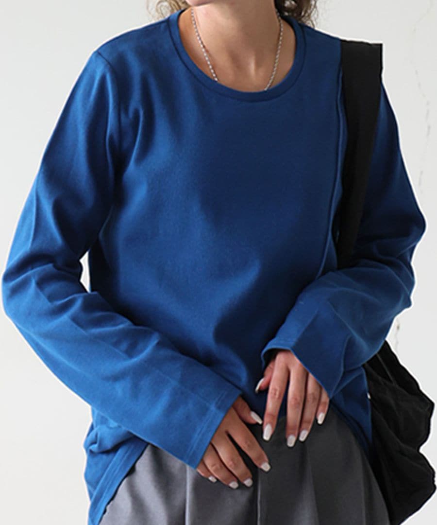 袖丈は長袖で、伸縮性のある綿混素材が柔らかくフィットし、心地よい着用感に。