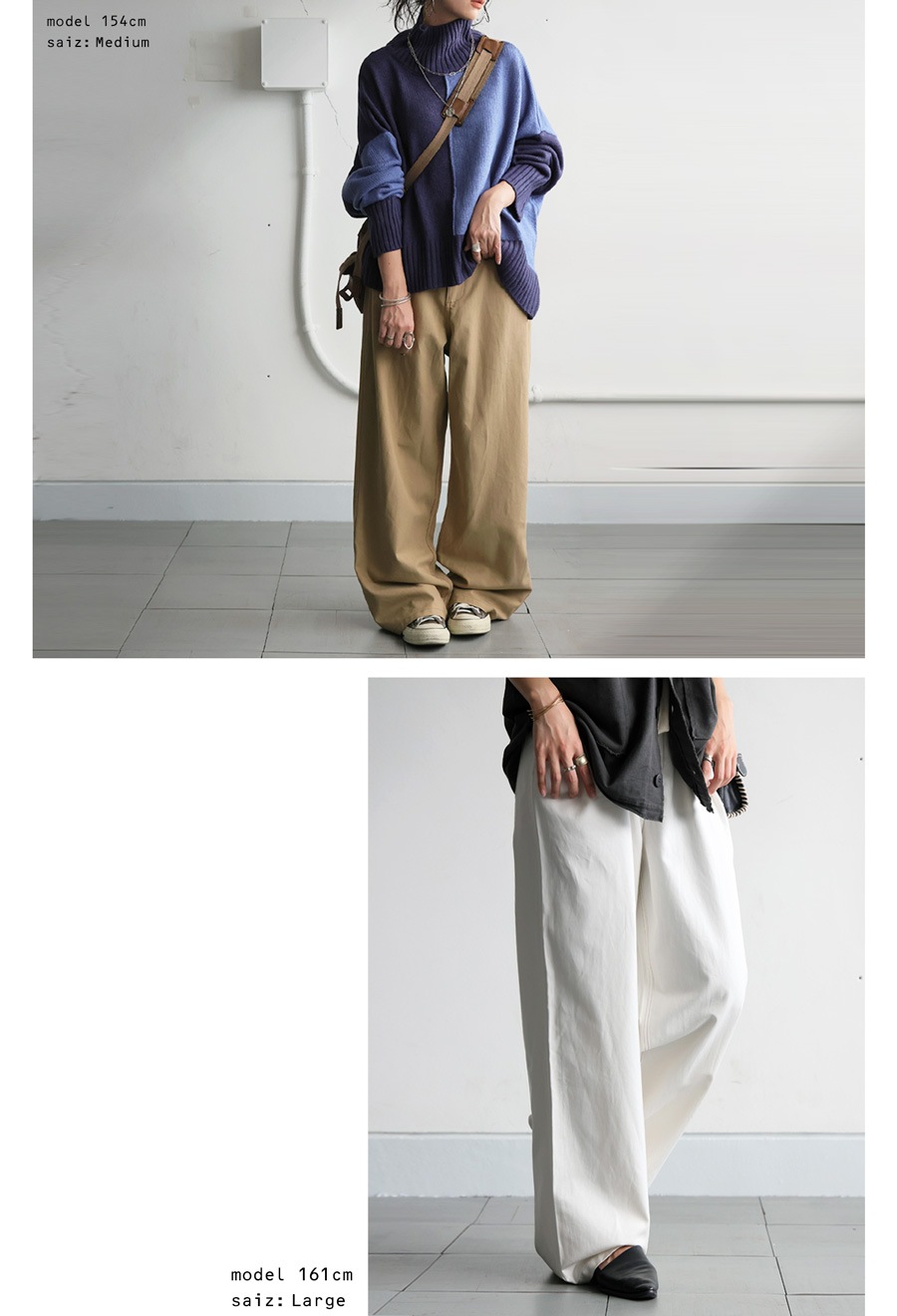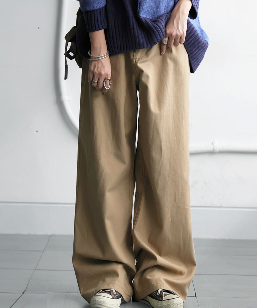 しなやかなツイル素材と程よい厚みが魅力のワイドパンツは、antiqua定番の美シルエットを実現。