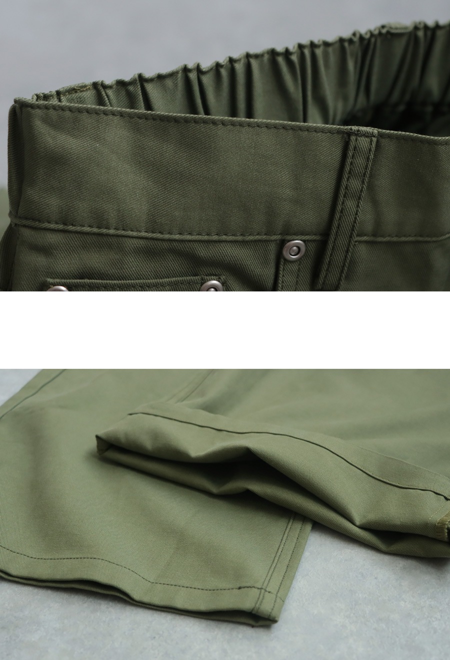 ウエストはバックゴム仕様で快適なフィット感を叶えつつ、正面からはすっきりとした見え感。
