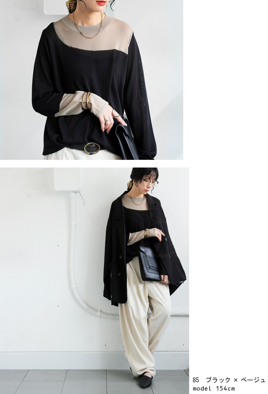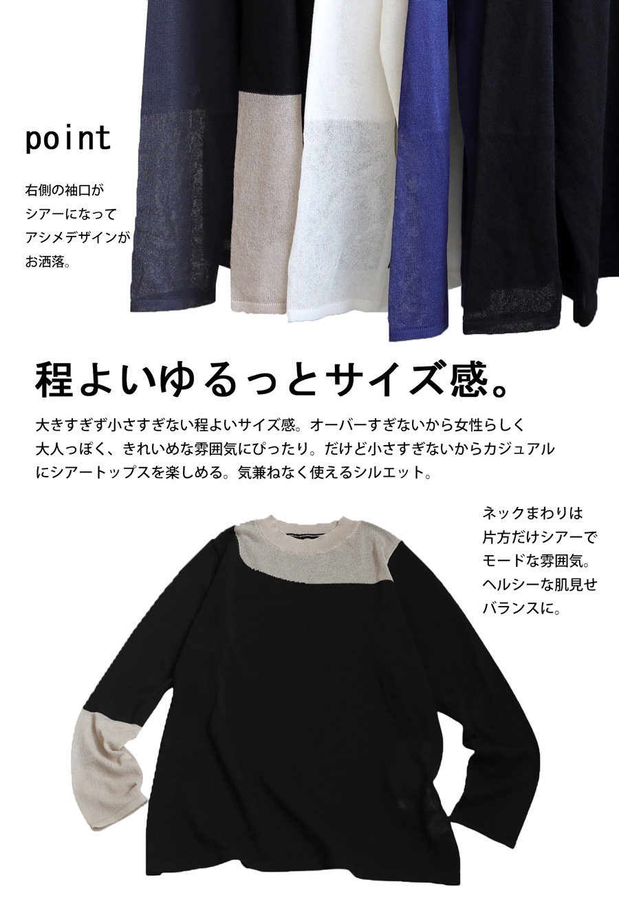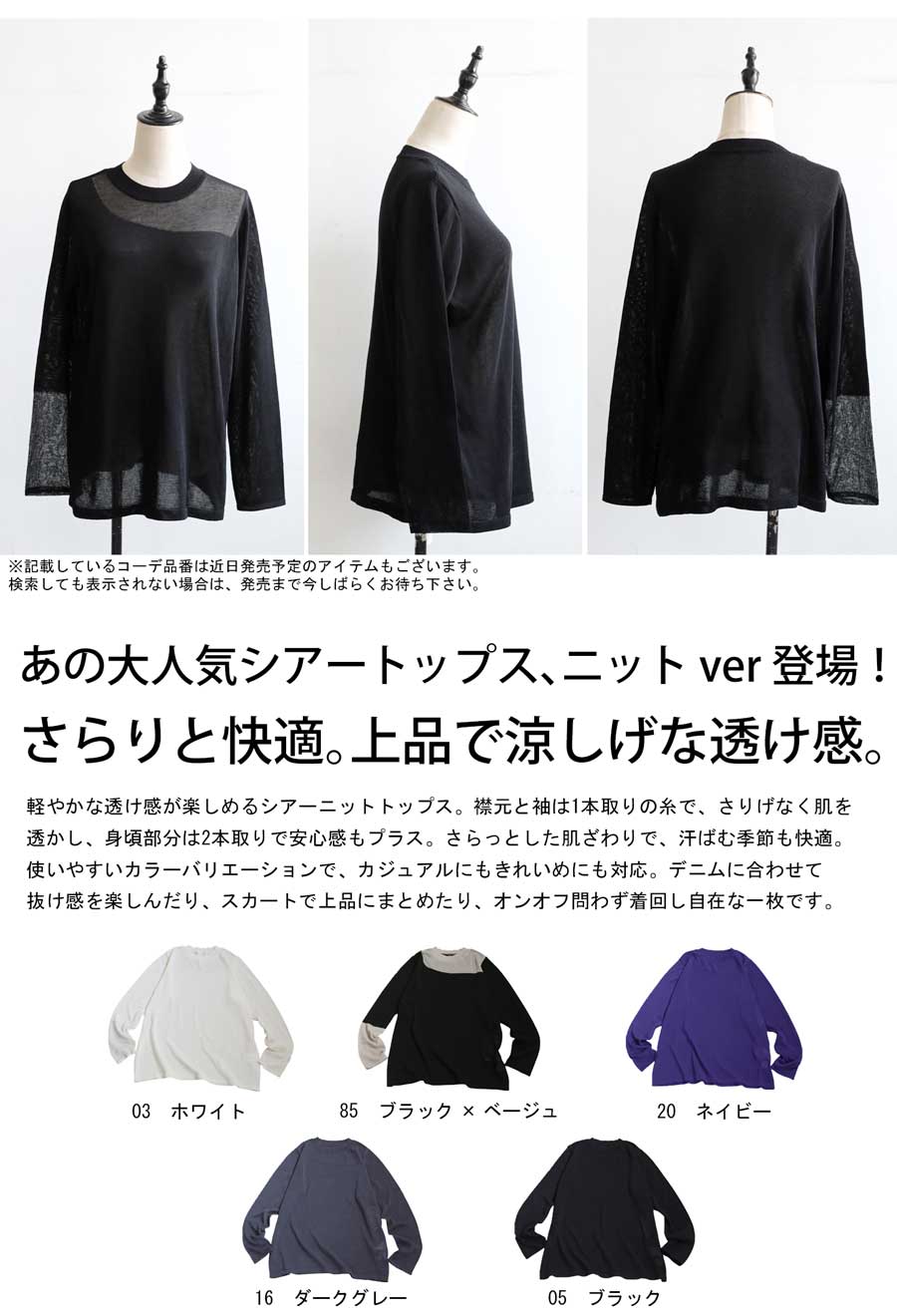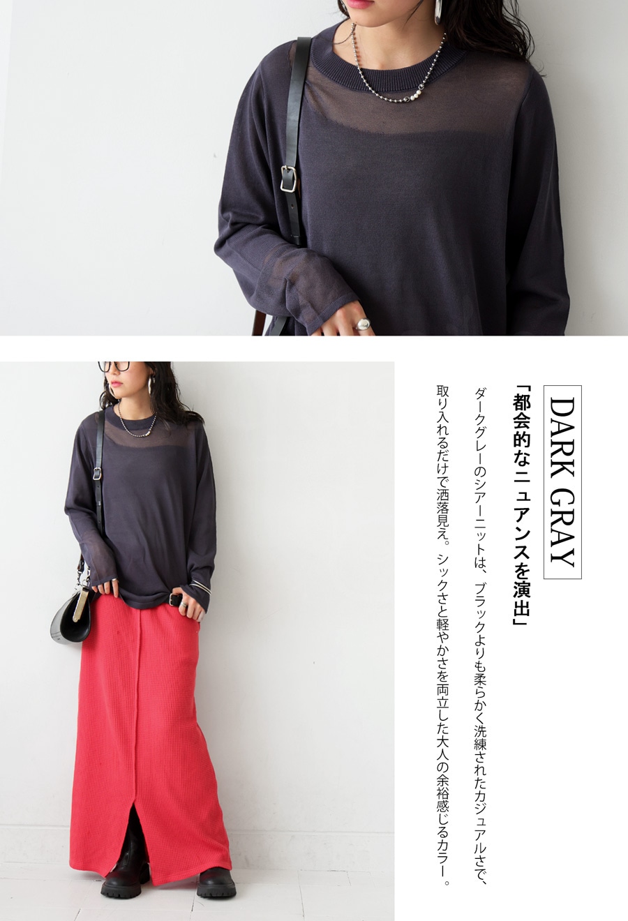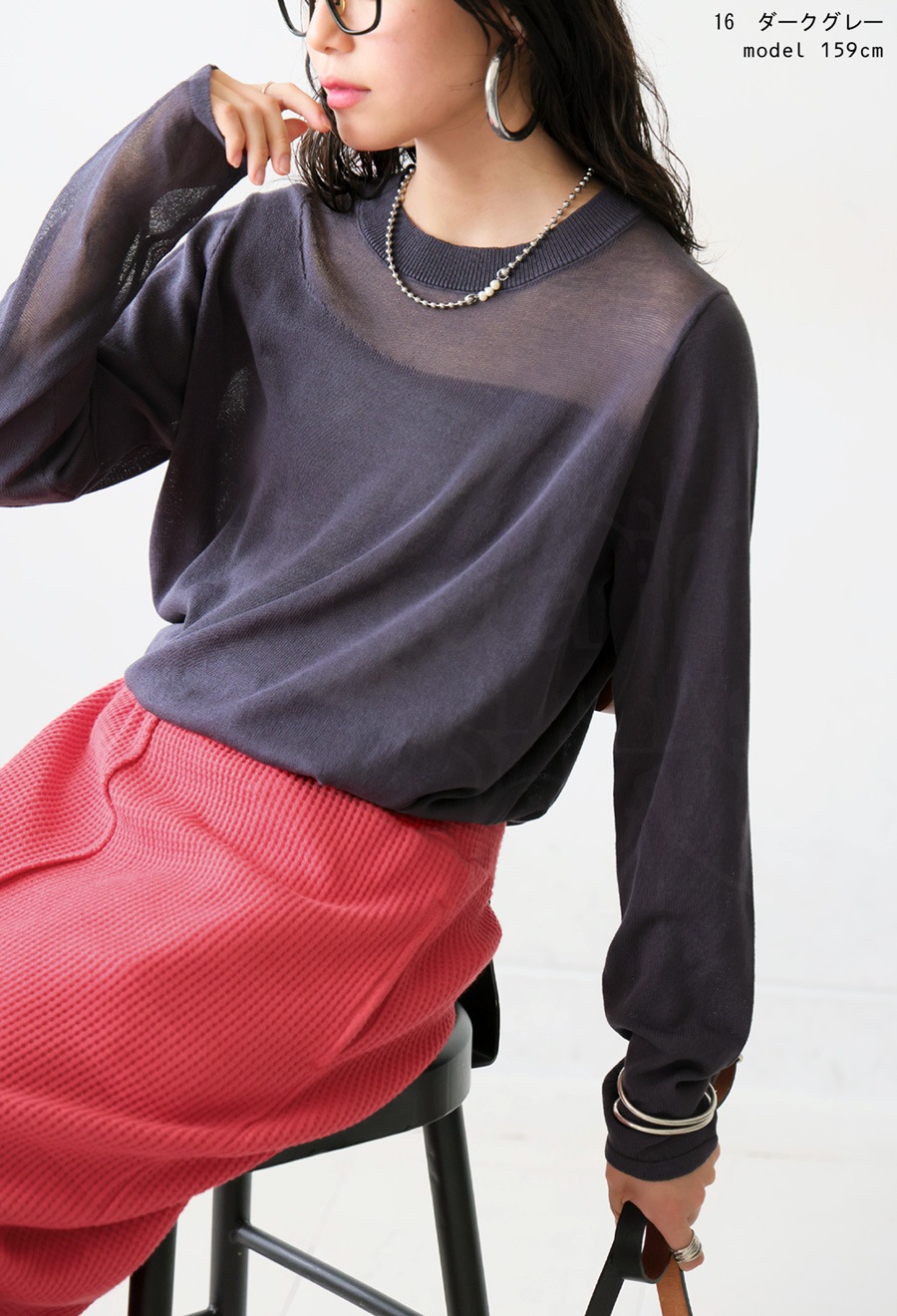 ほんのりとした透け感が魅力のシアーニットトップスです。