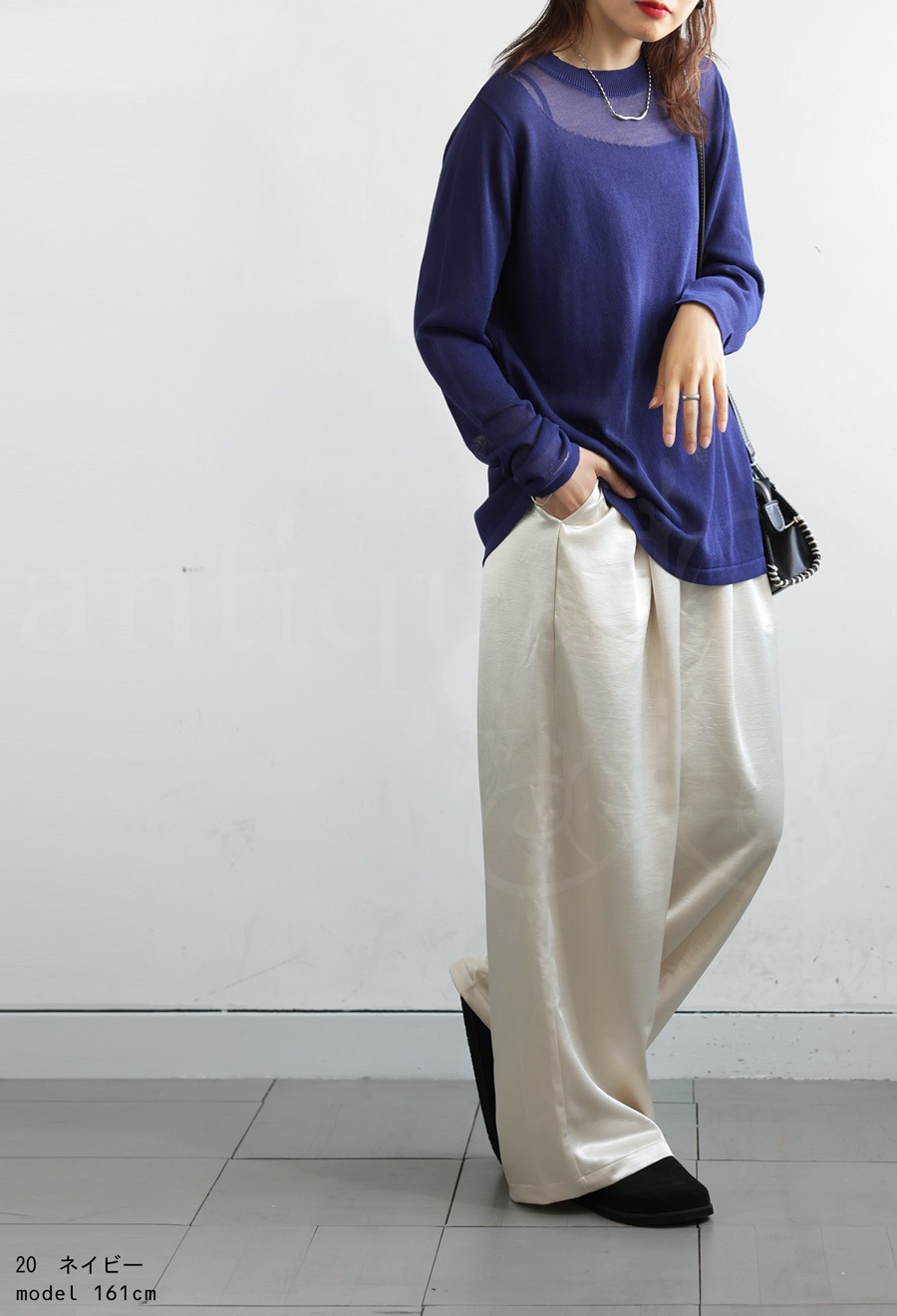 透け感 シアーニット トップス レディース 長袖 クルーネック・(80)メール便可