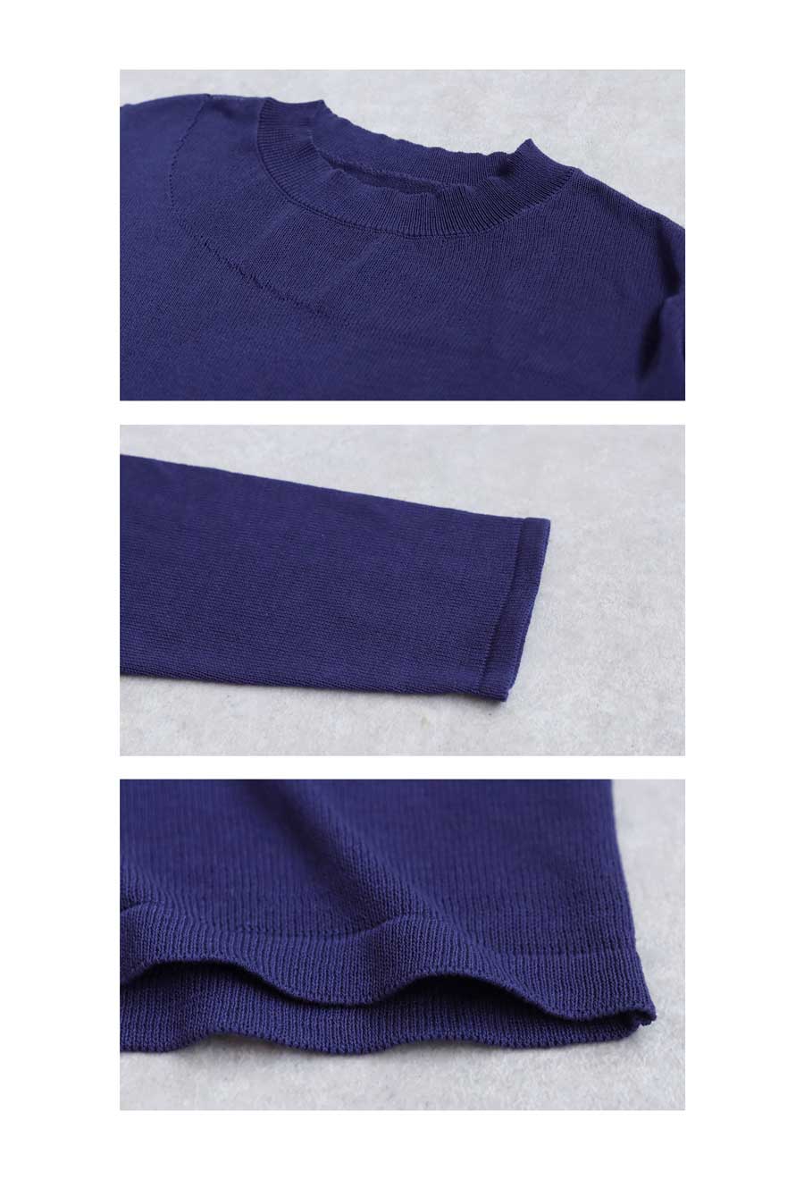 ネックラインはクルーネックでやさしく首元に沿い、上品な肌見せを叶えます。