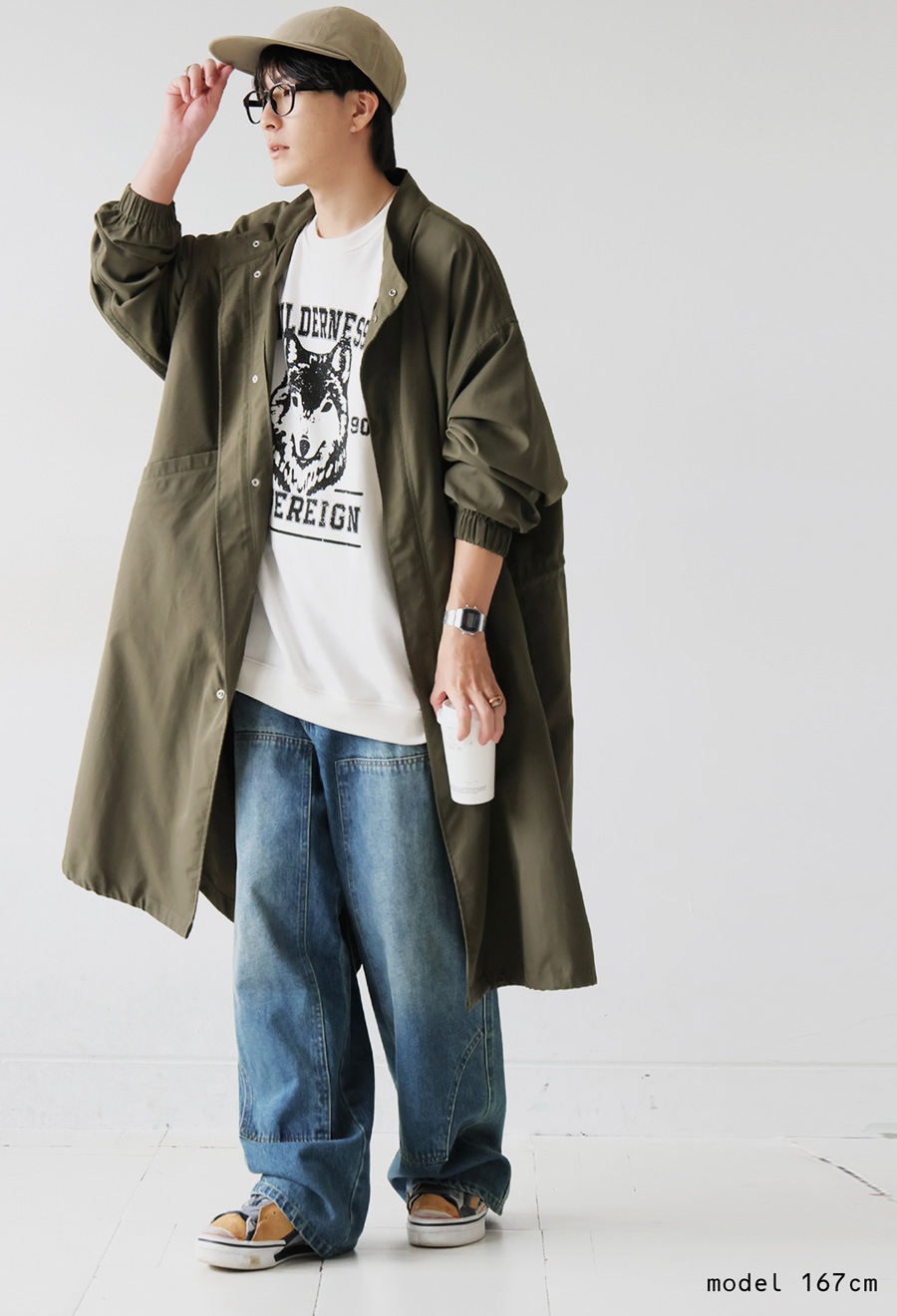 丈感はヒップが隠れるほどのミドル丈で、幅広いボトムスと相性抜群です。