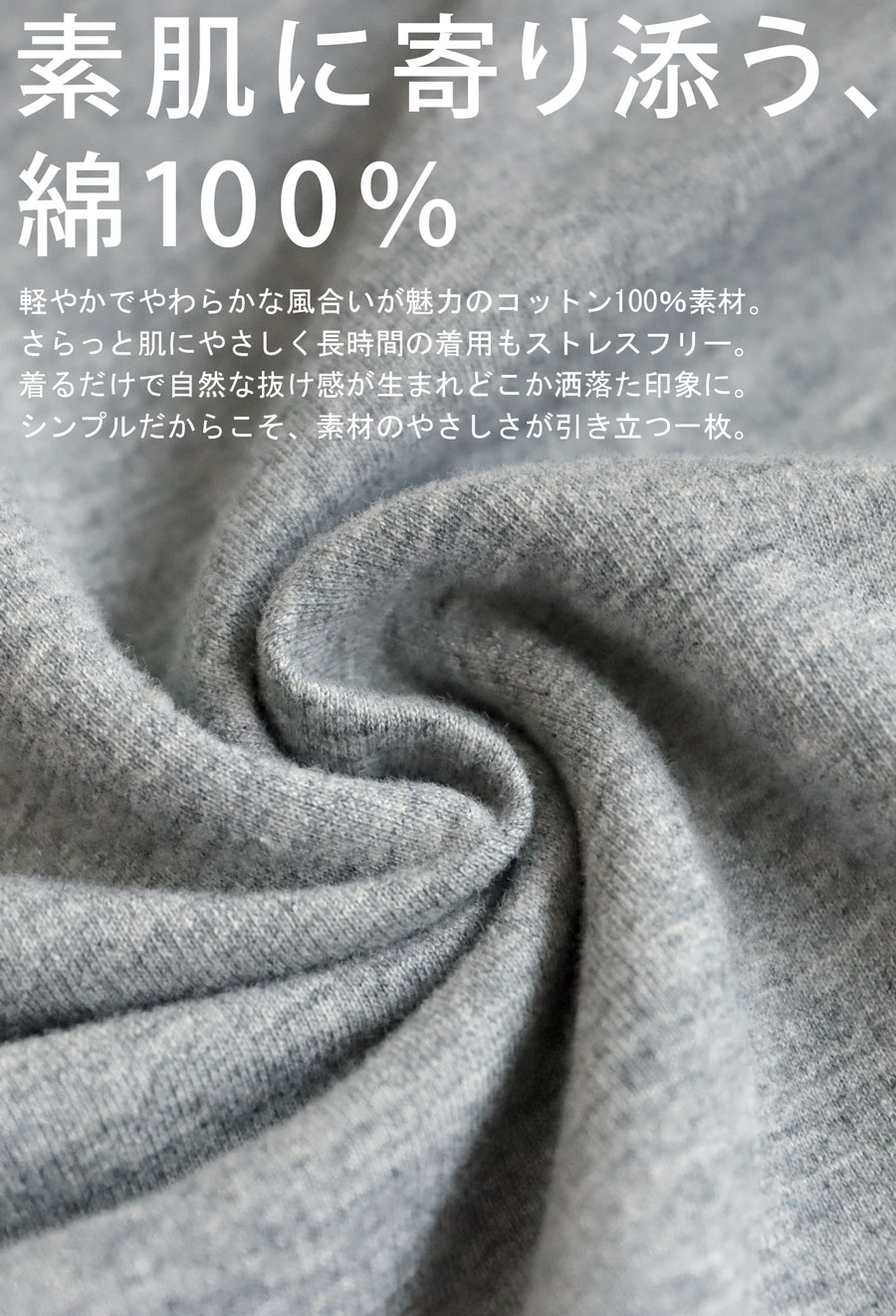 トップスは、肌にやさしい綿100%(コットン・Cotton)素材を使用したカットソータイプ。
